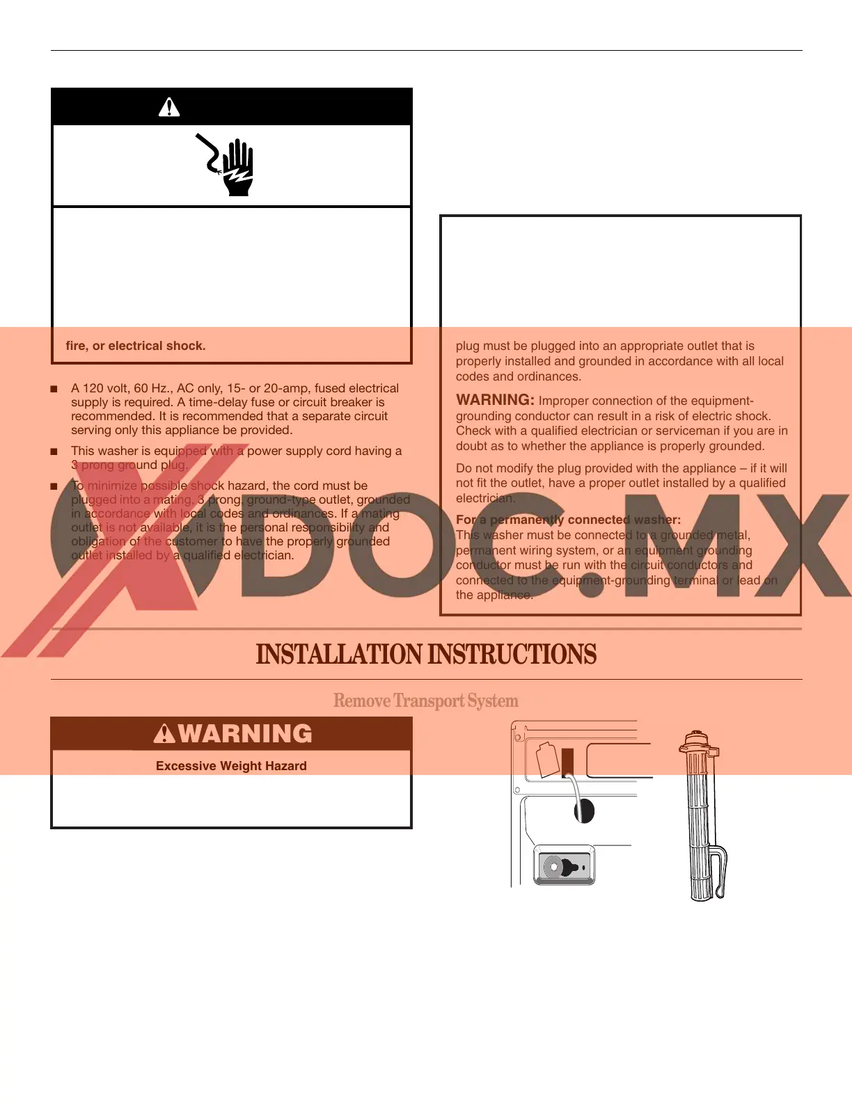 For a grounded, cord-connected washer: