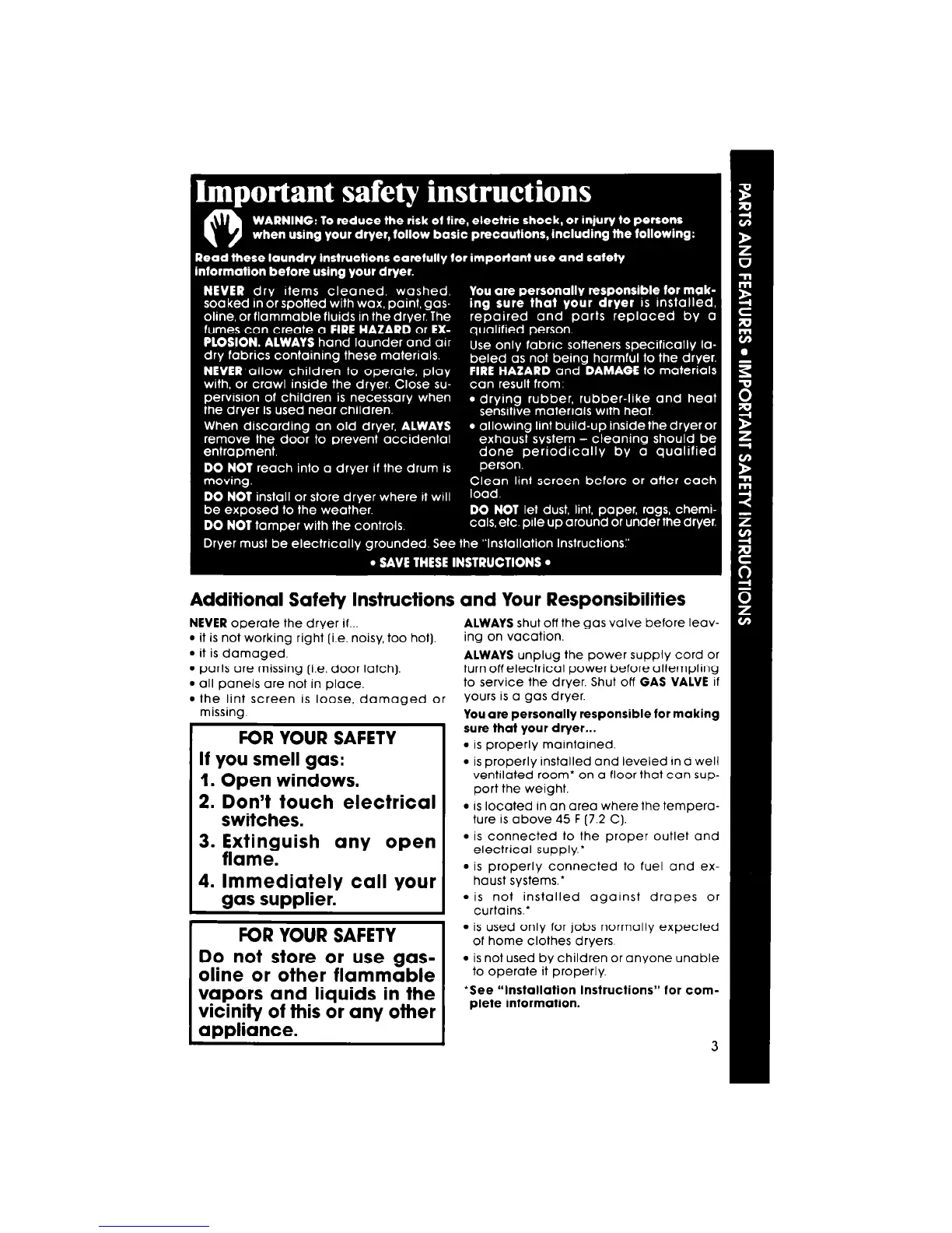 Additional Safety Instructions and Your Responsibilities
