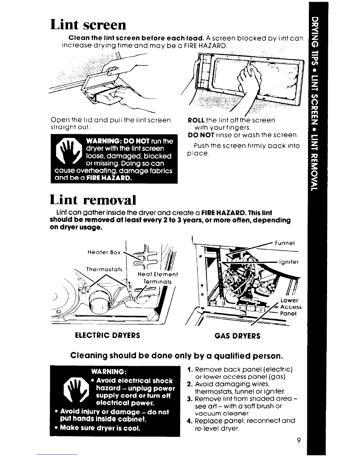 Lint can gather inside the dryer and create a FIRE HAZARD. This lint