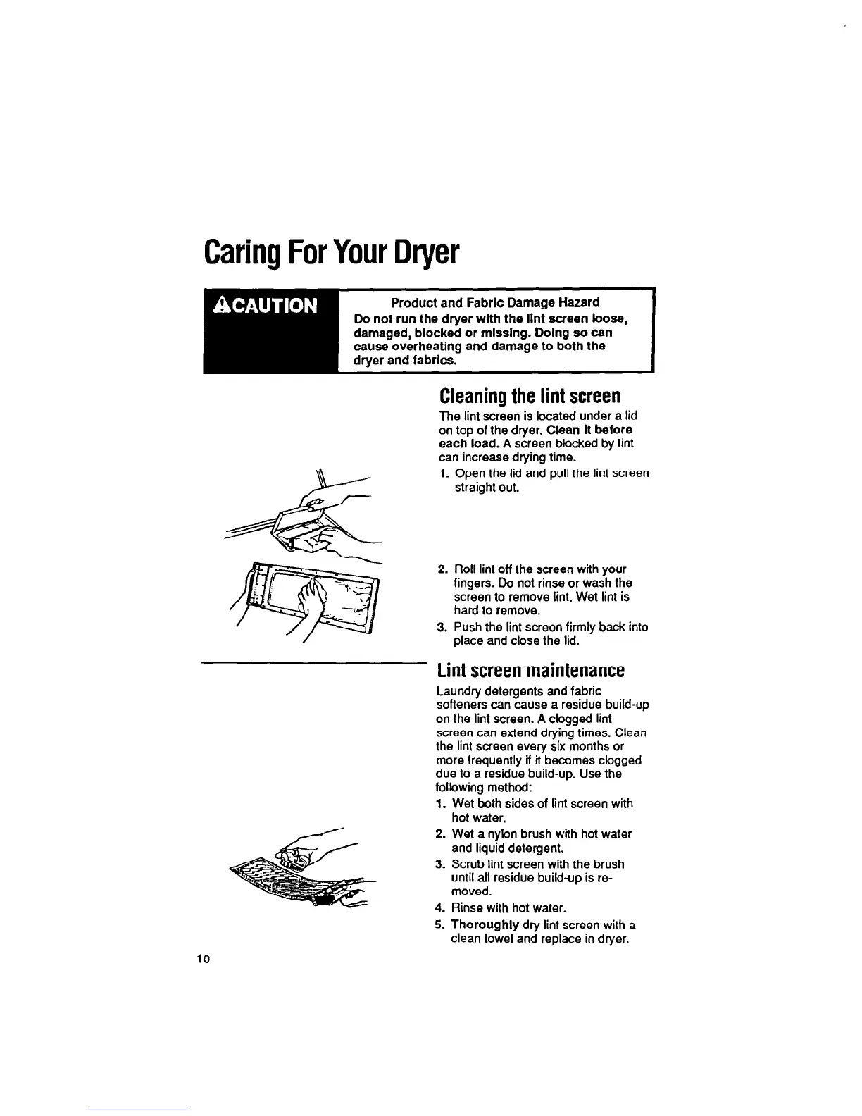 Do not run the dryer wlth the llnt screen loose,