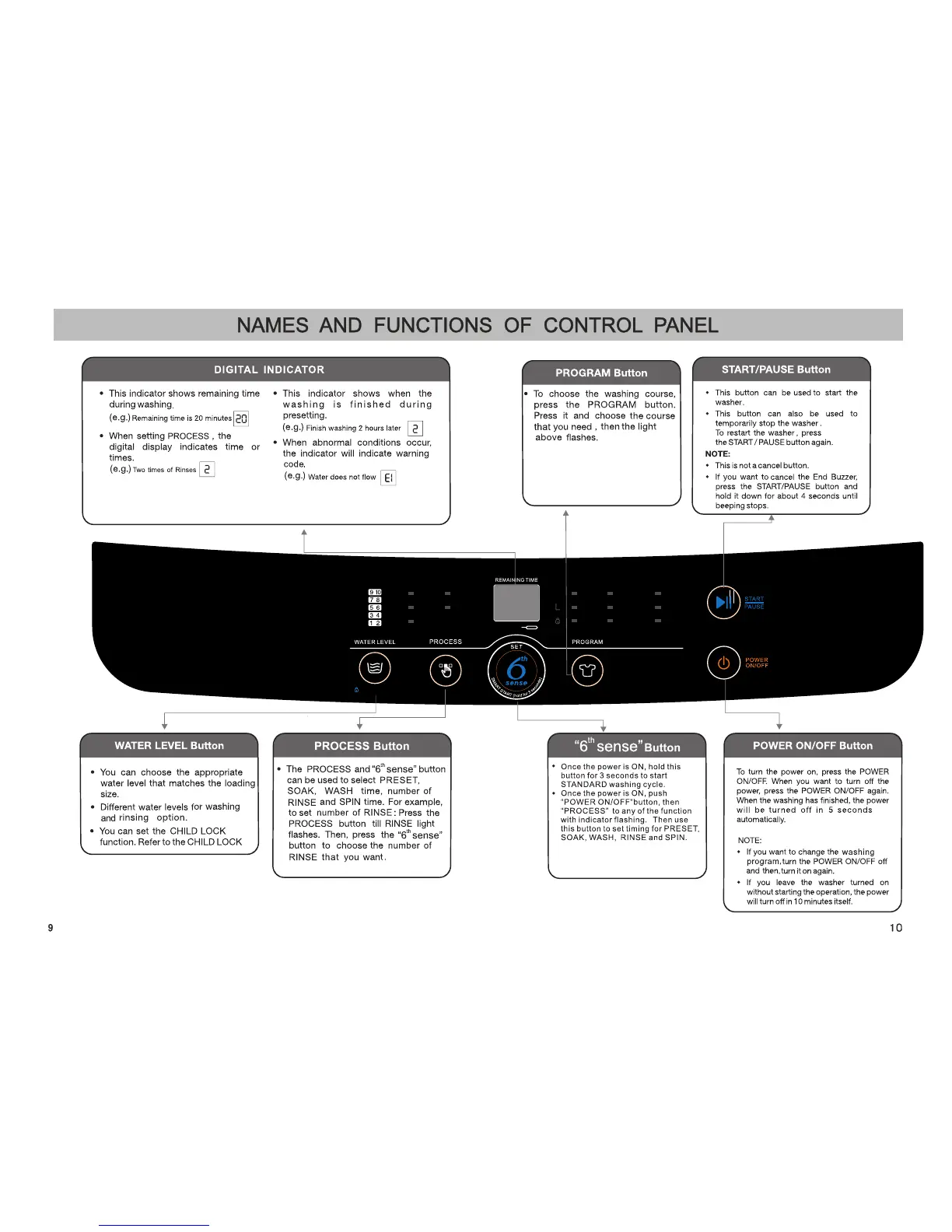 Whirlpool LSP780GP - Names and Functions of Control Panel