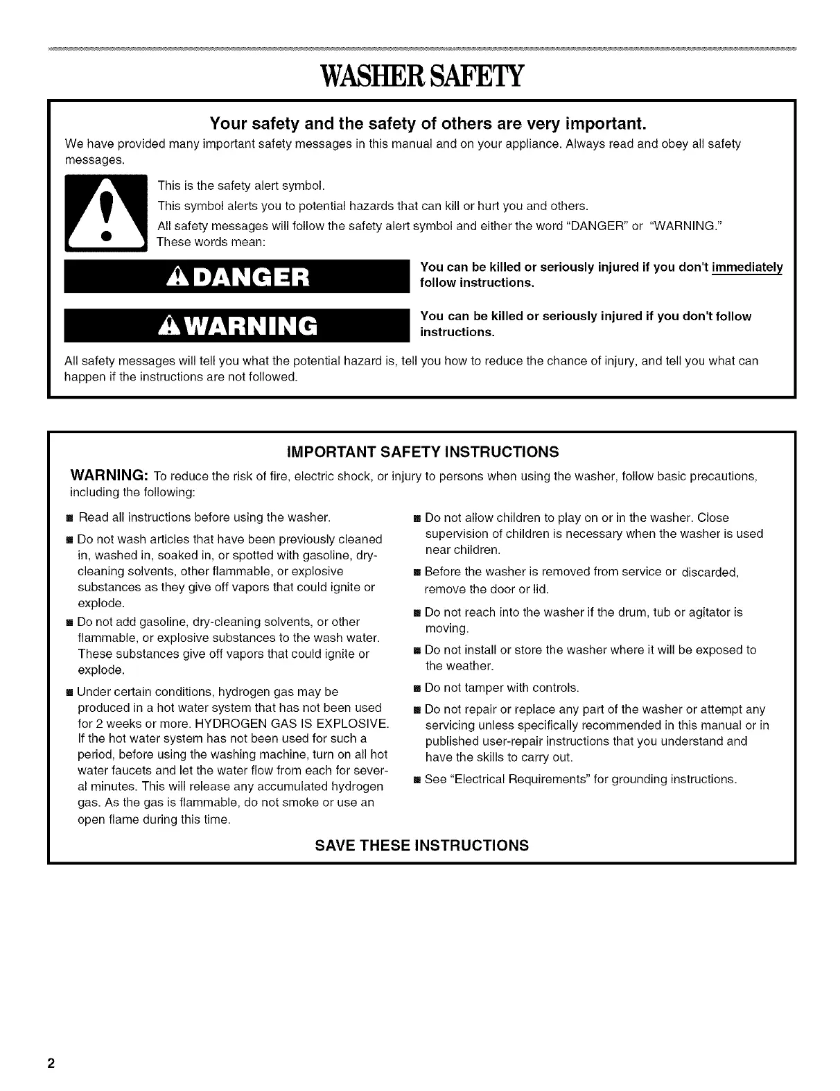 [] Read all instructions before using the washer. []