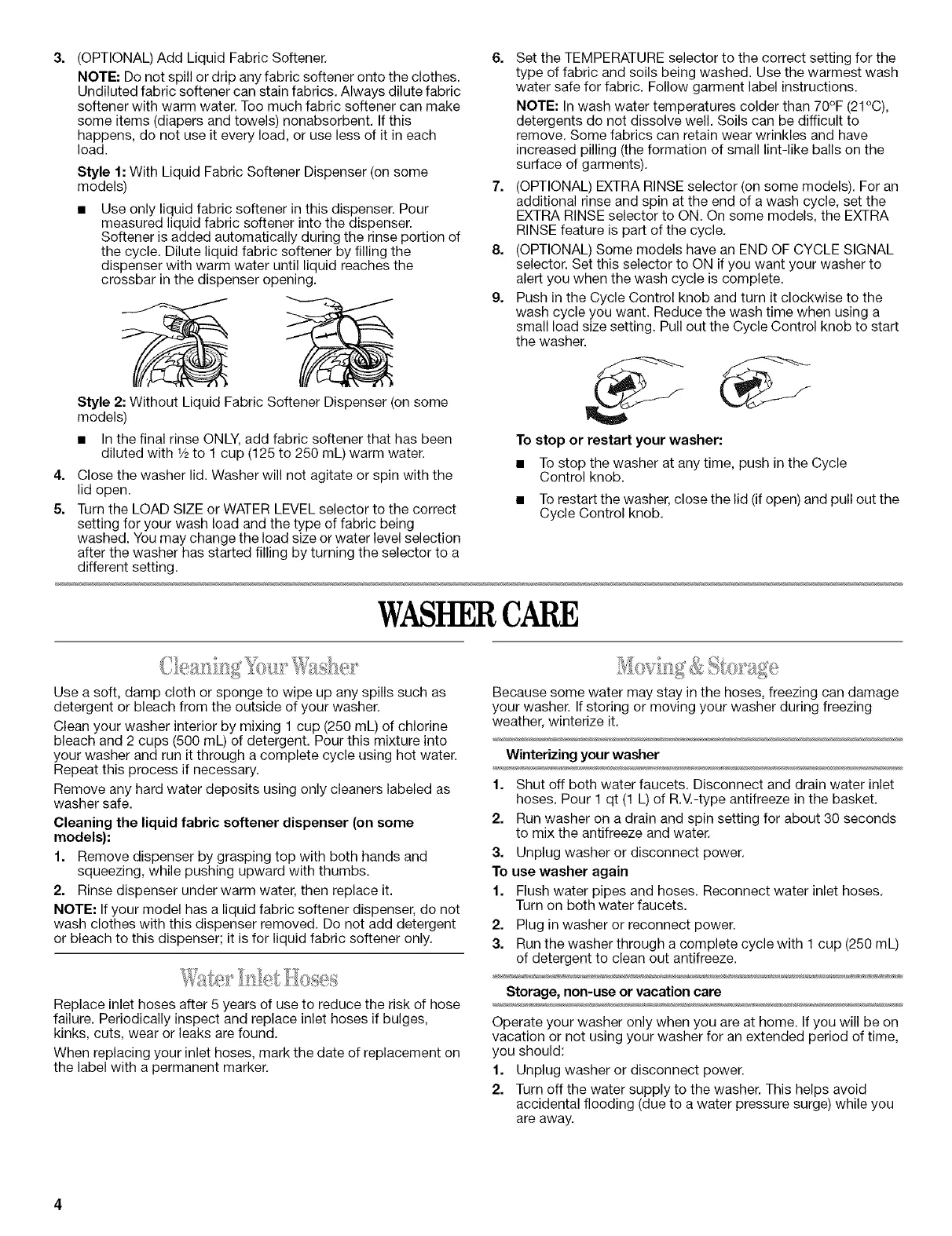 NOTE: If your model has a liquid fabric softener dispenser, do not