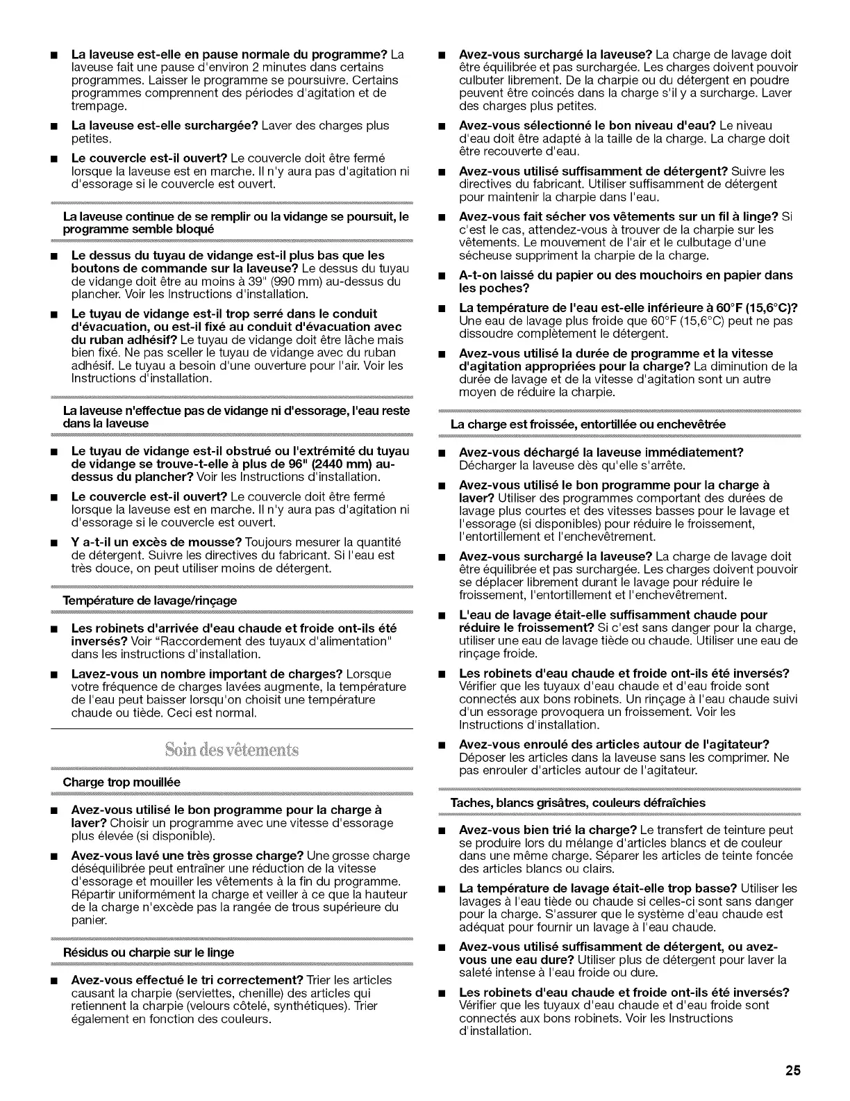 peuvent _tre coinces dans la charge s'il y a surcharge. Laver