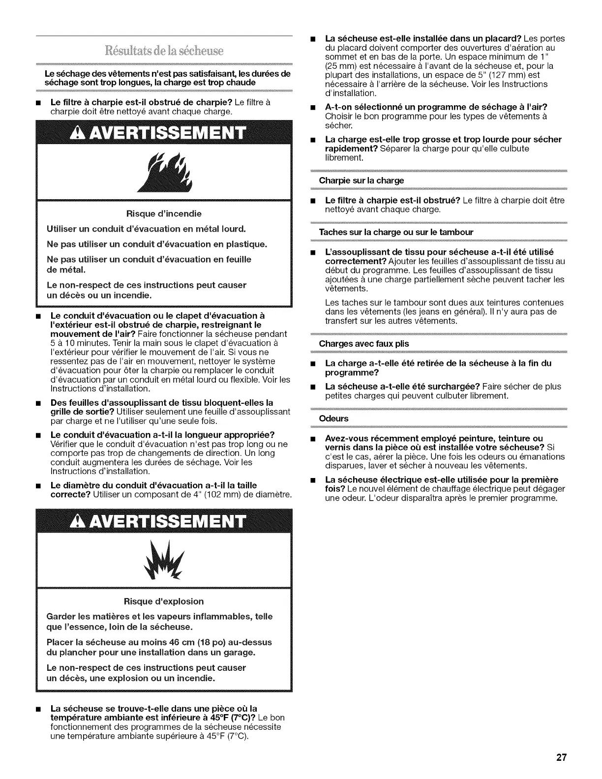 d'evacuation par un conduit en metal Iourd ou flexible. Voir les