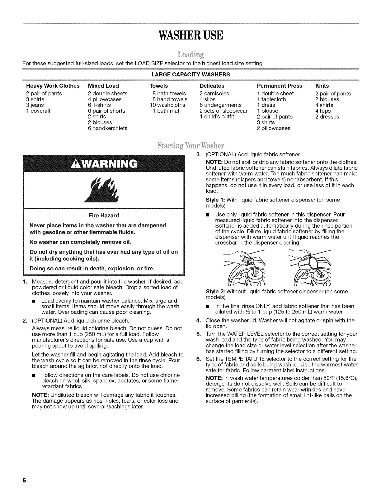 NOTE: Do not spill or drip any fabric softener onto the clothes.