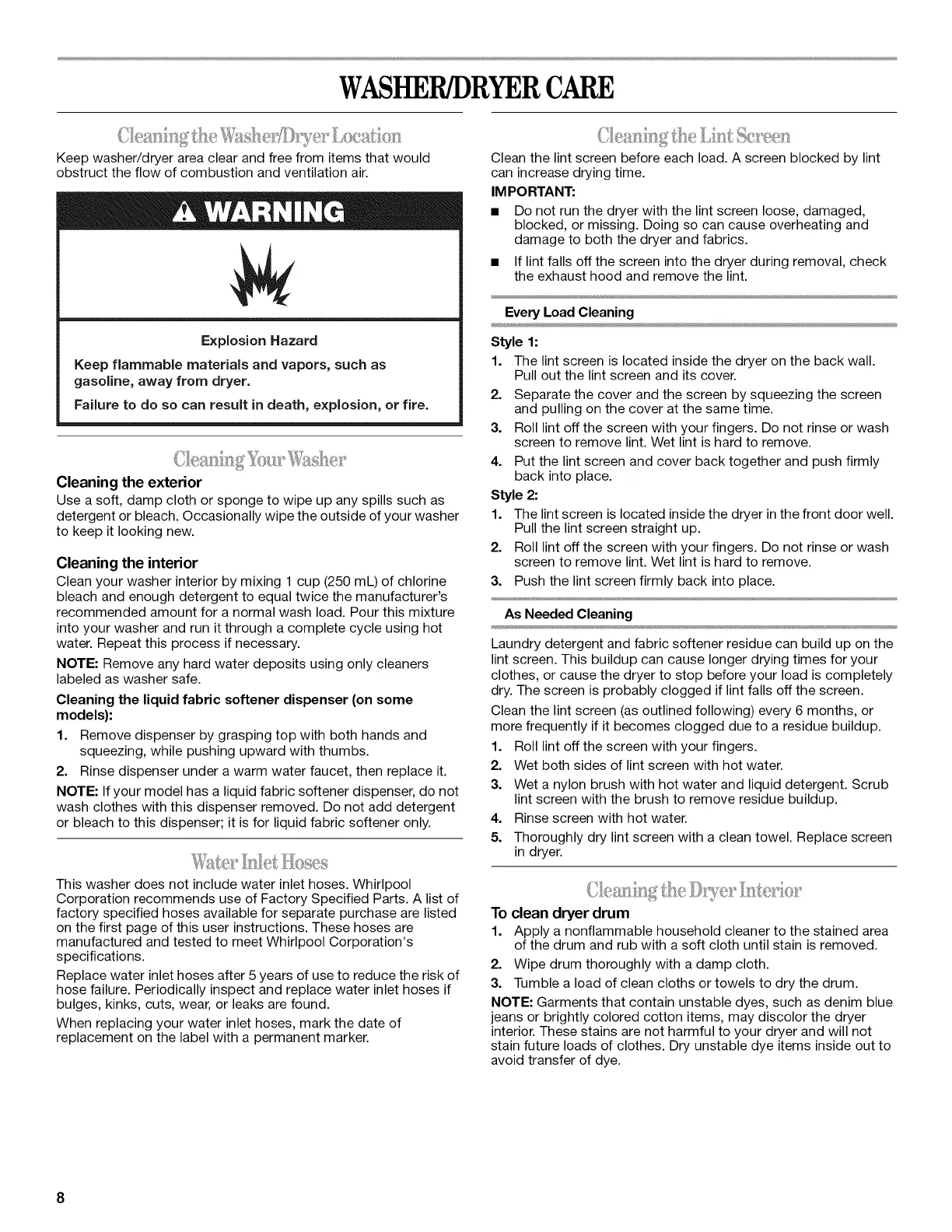 detergent or bleach. Occasionally wipe the outside of your washer