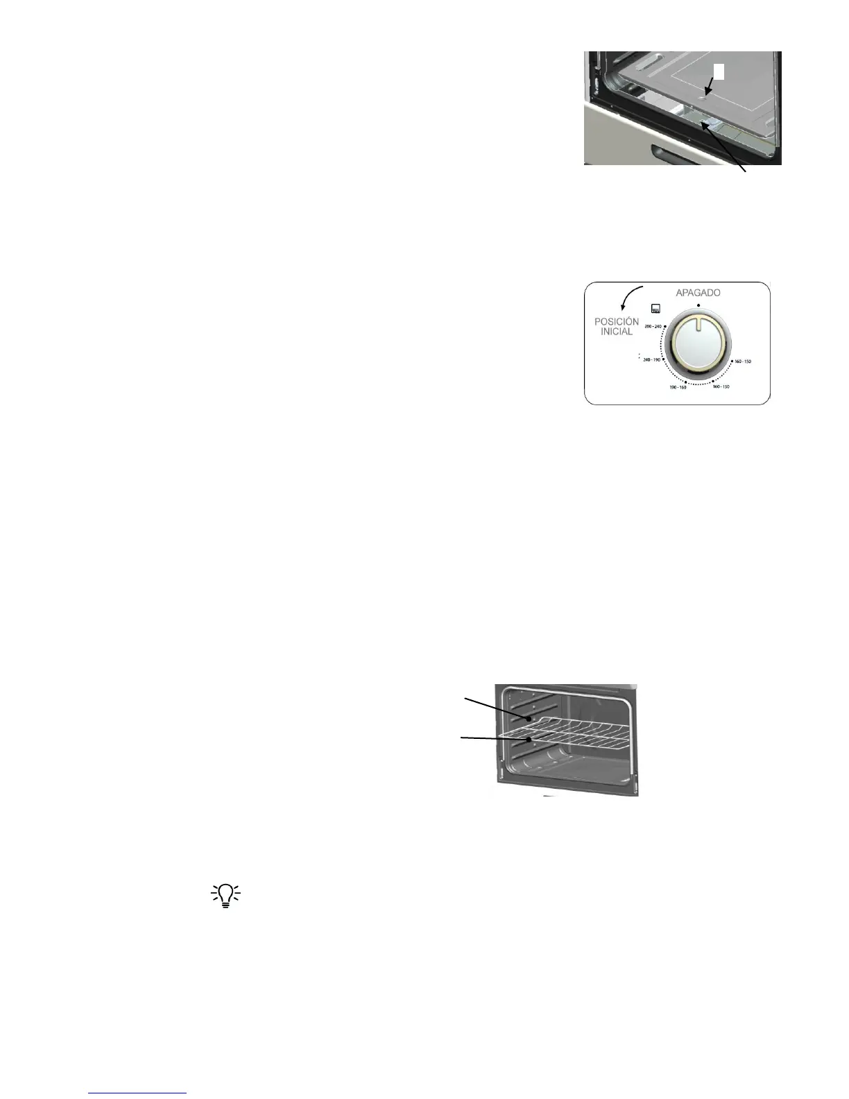 puerta. La luz de horno se enciende cuando se presiona hacia abajo el interruptor que se localiza junto a la perilla externa