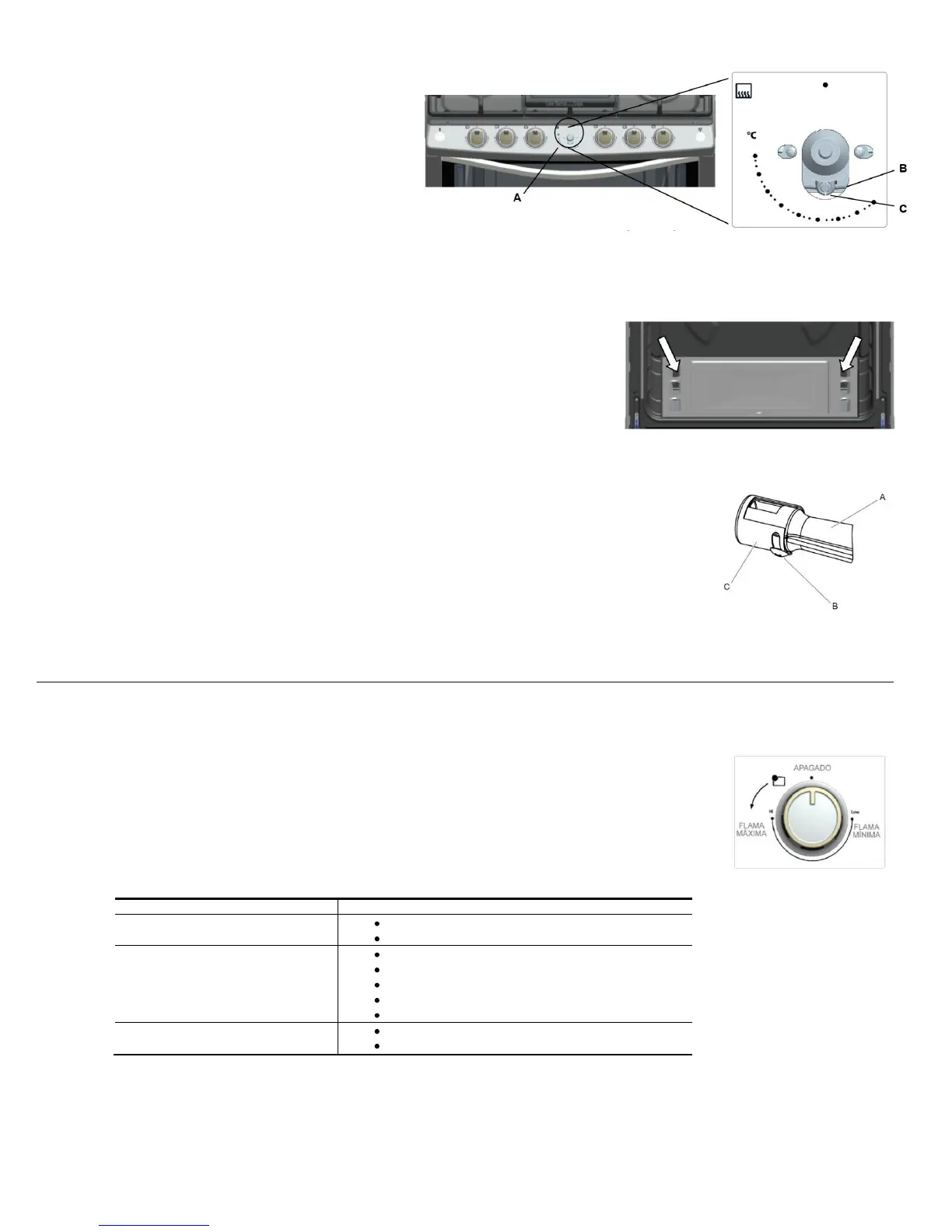 2. Turn on the oven burner as explained on section “Oven Burner” and “Model with electronic ignition thermostat”. Remove the knob and