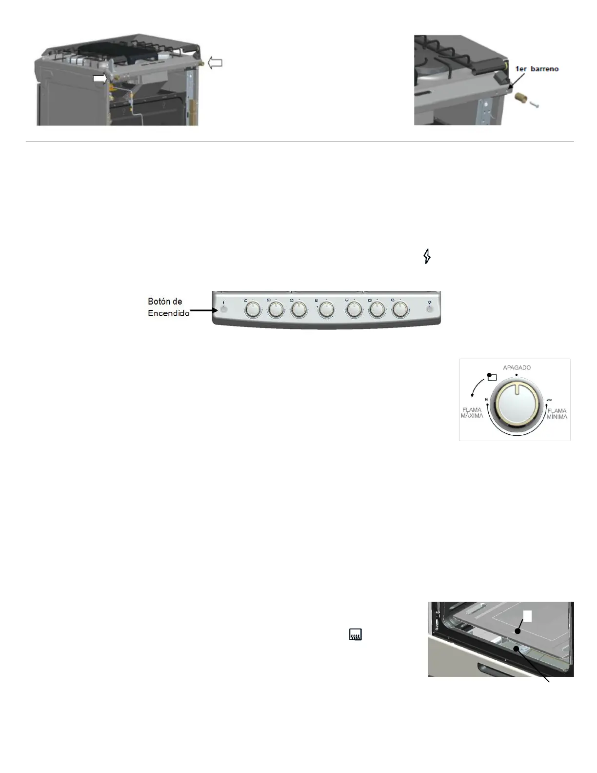 de extrema izquierda y gire cualquiera de las perillas de los quemadores superiores hasta la posición Hi (flama máxima),
