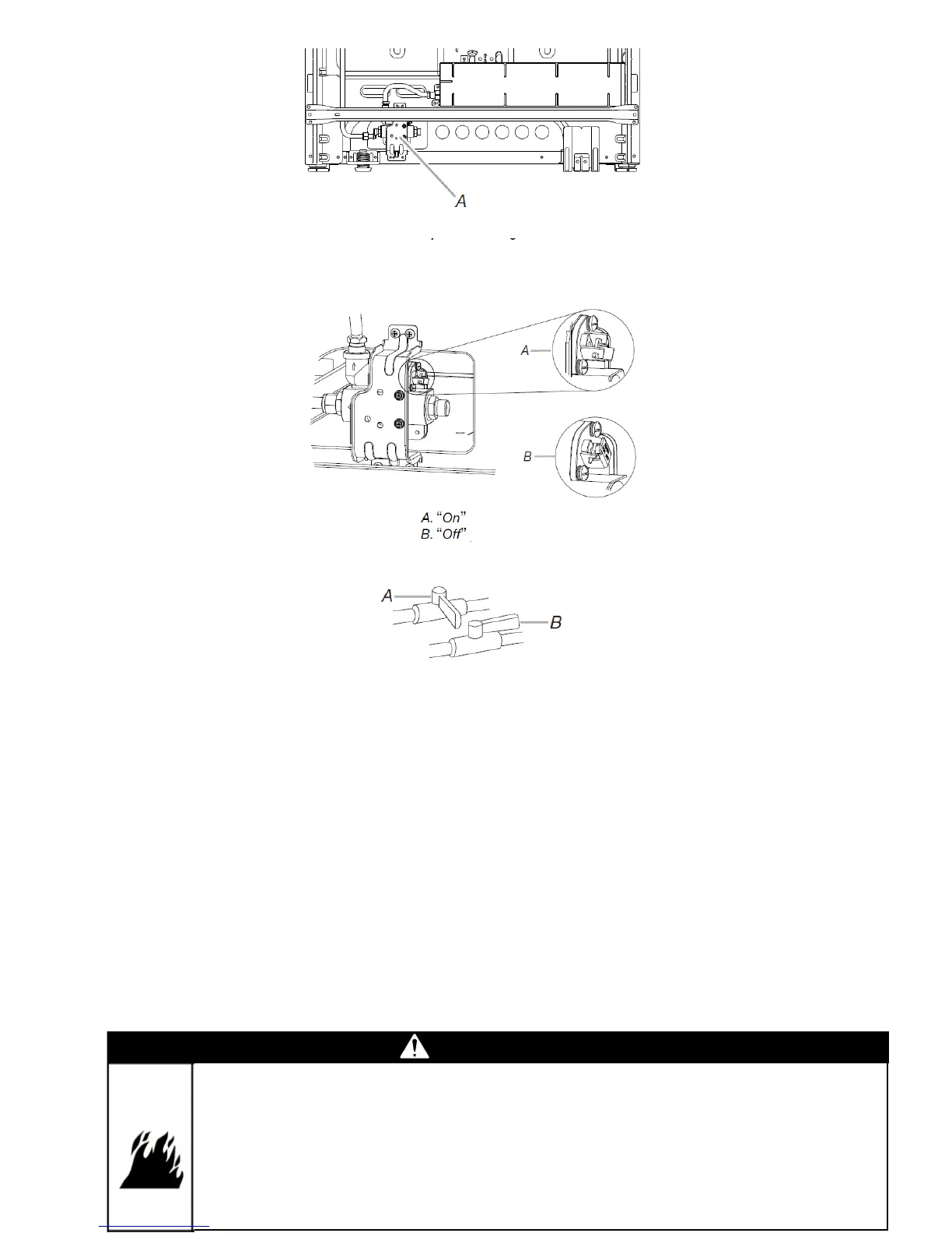 3. Abra la válvula de cierre manual en la línea de suministro de gas. La válvula está abierta cuando el mango es