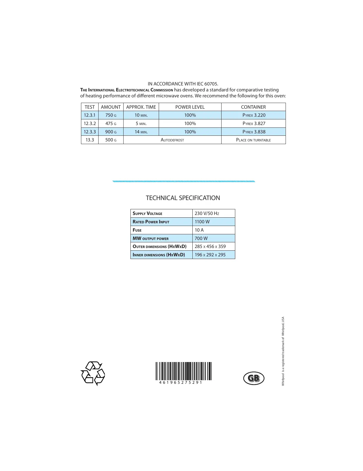 of heating performance of di erent microwave ovens. We recommend the following for this oven: