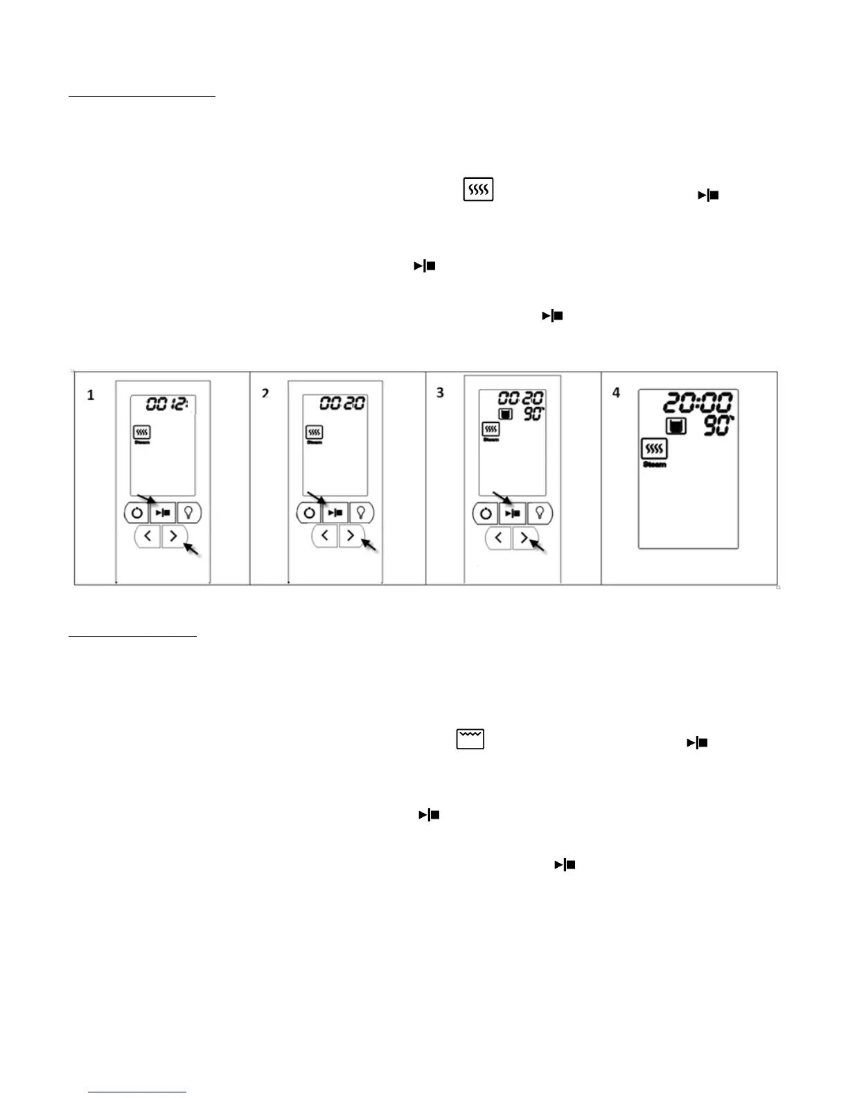 1. In standby mode, press the【>】button to the steam icon“ ”, which will flash. Press the 【 】
