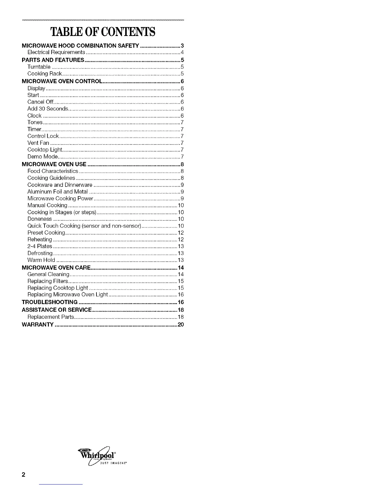 MICROWAVE HOOD COMBINATION SAFETY ........................... 3
