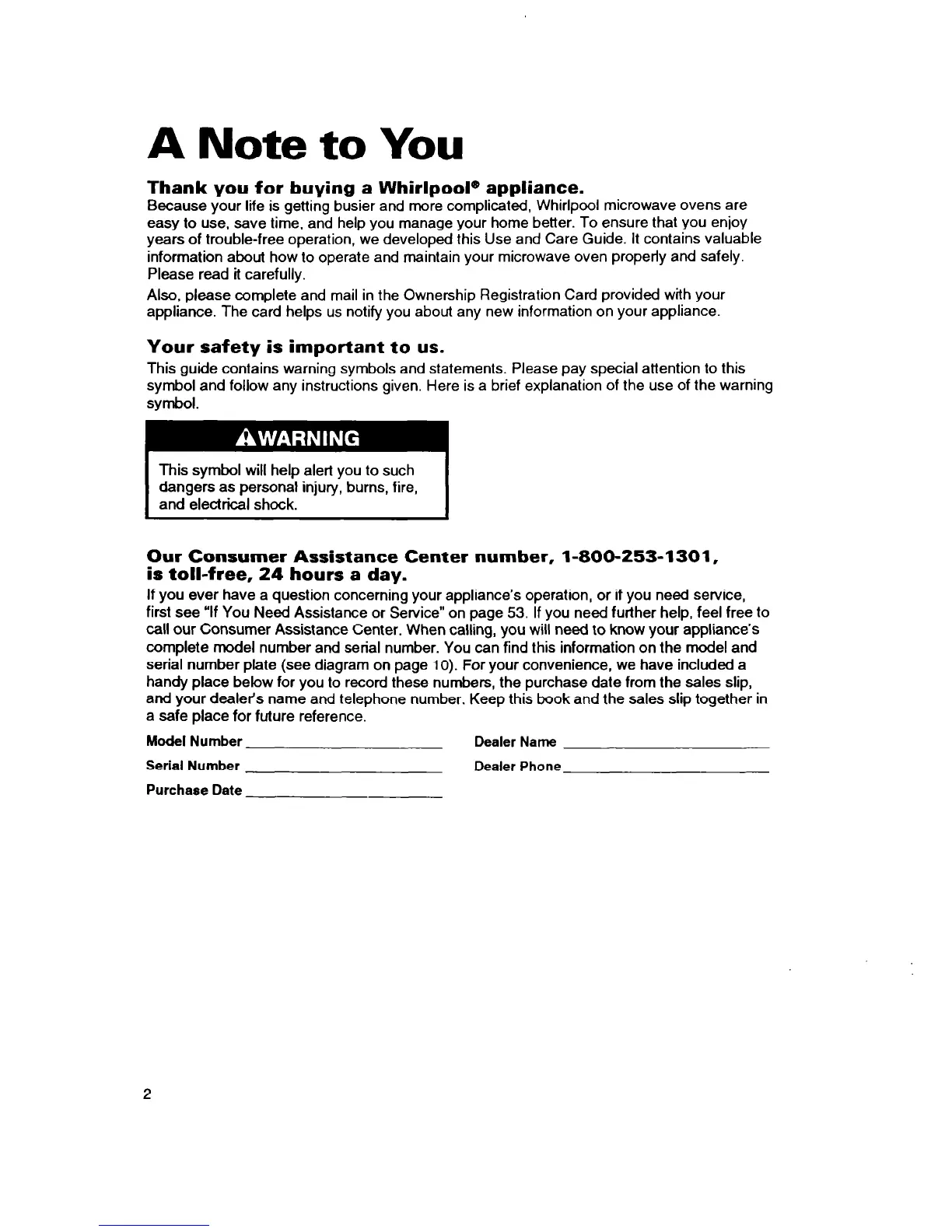 Thank you for buying a Whirlpool@ appliance.