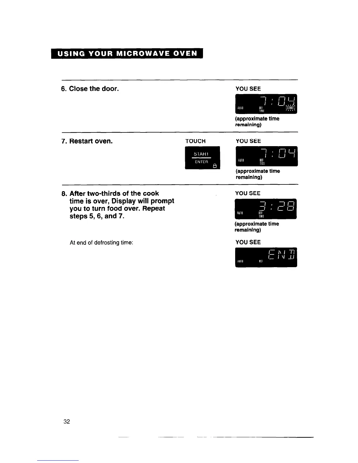At end of defrosting time: