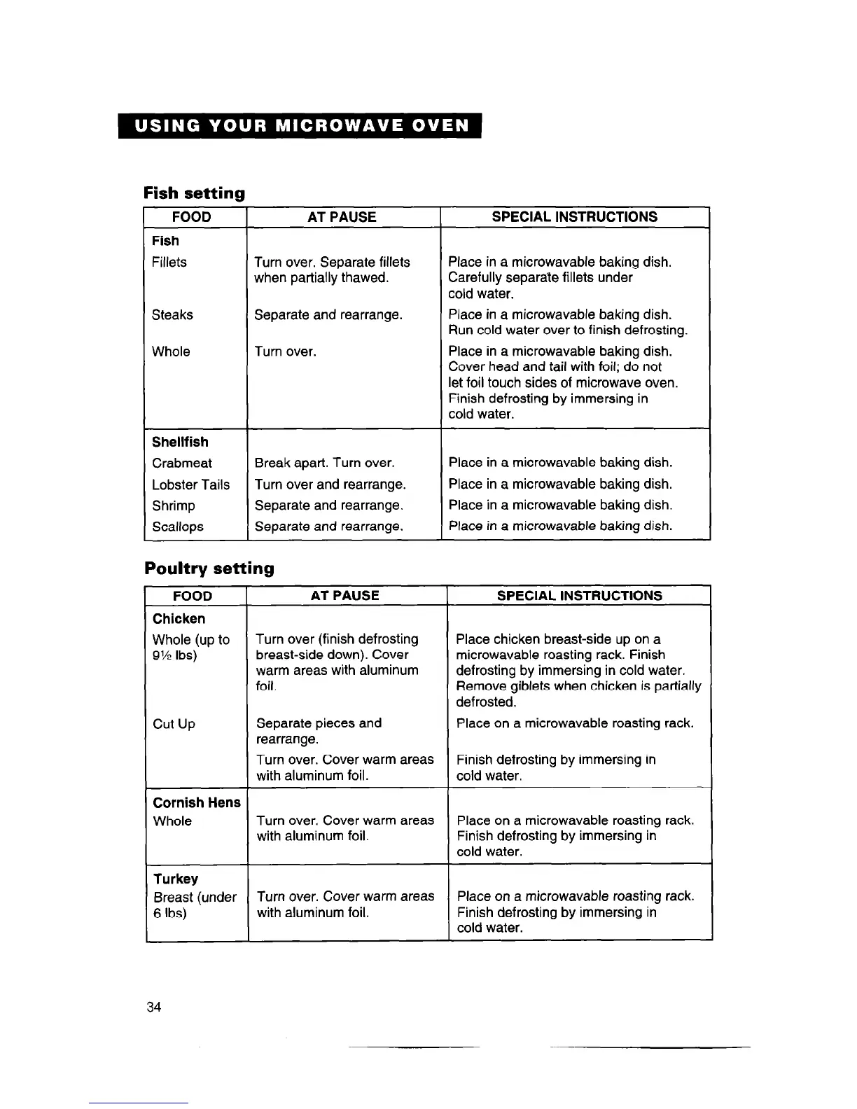 Turn over. Cover warm areas Finish defrosting by immersing in