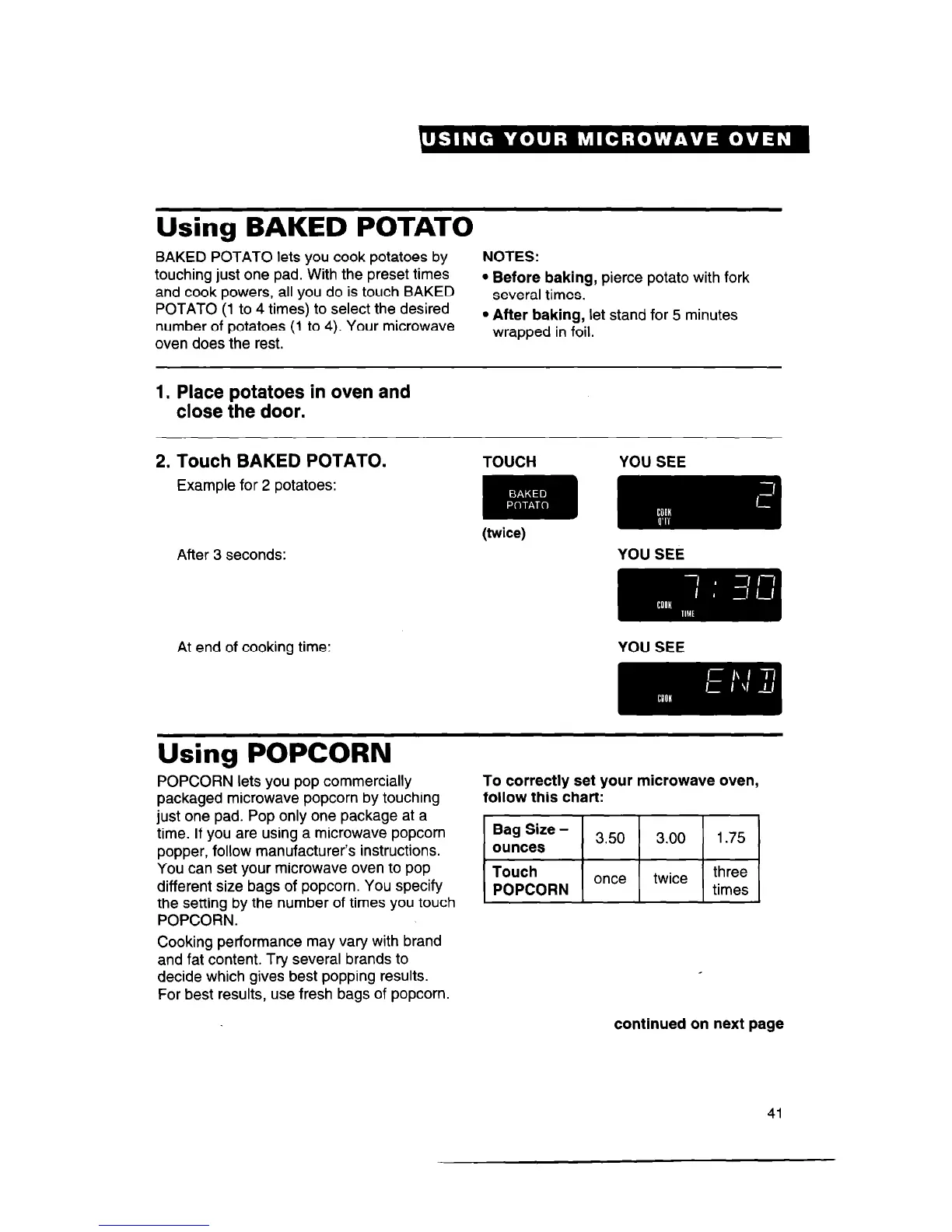 number of potatoes (1 to 4). Your microwave