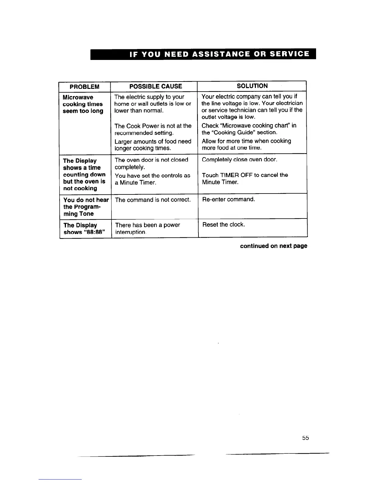 POSSIBLE CAUSE SOLUTION