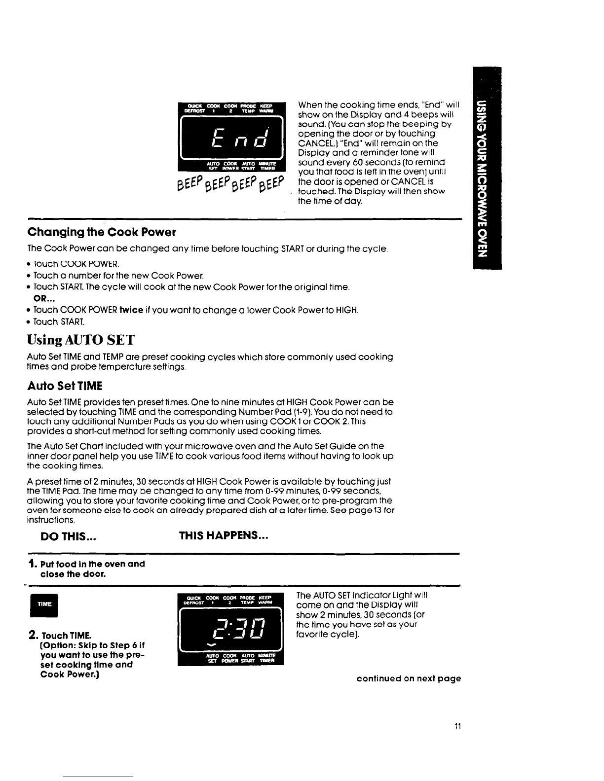 Auto Set TIME provides ten preset times. One to nine minutes at HIGH Cook Power can be