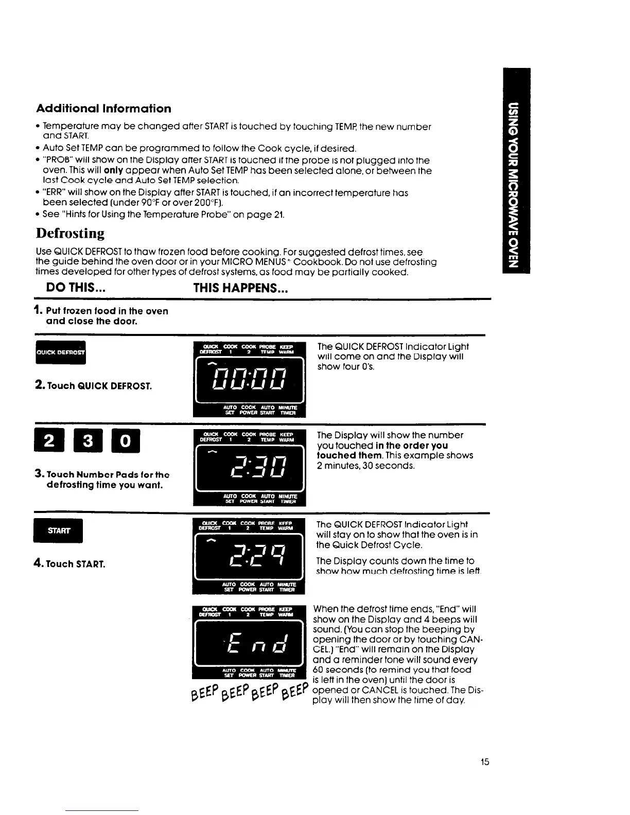 the guide behind the oven door or in your MICRO MENUS”’ Cookbook. Do not use defrosting