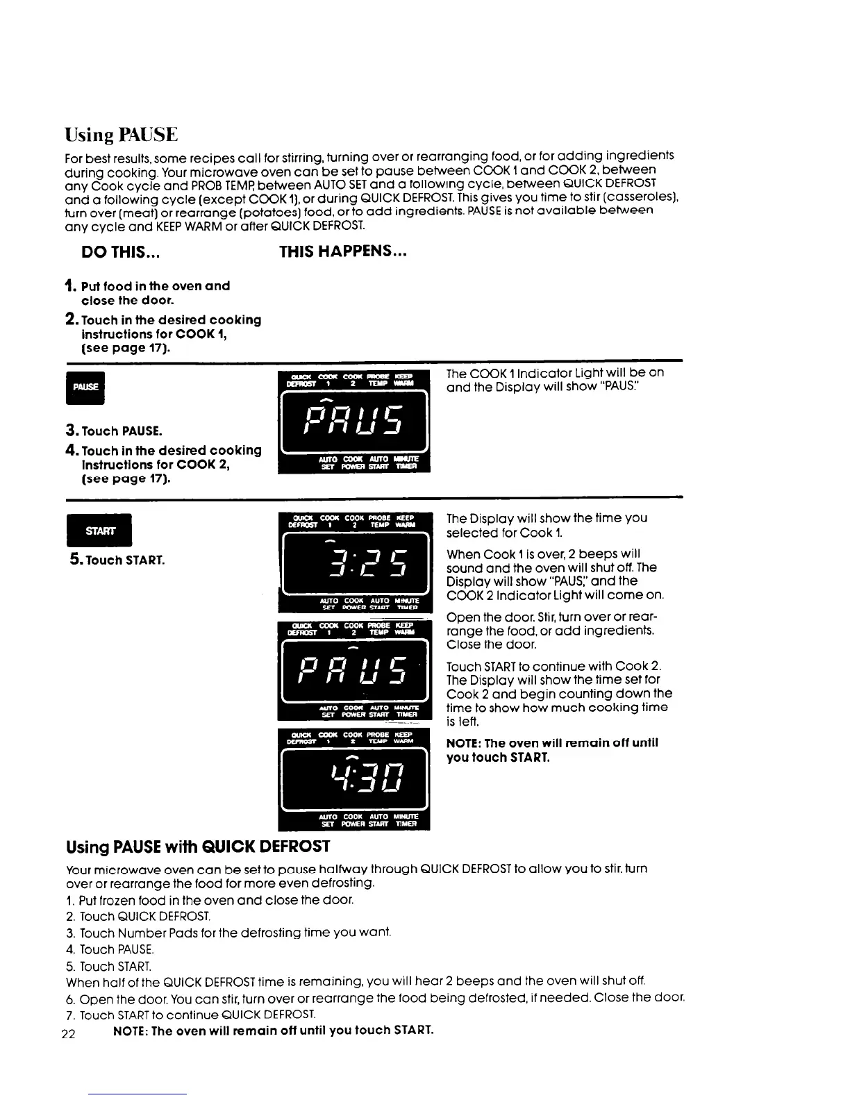 during cooking. Your microwave oven can be set to pause between COOK I and COOK 2, between