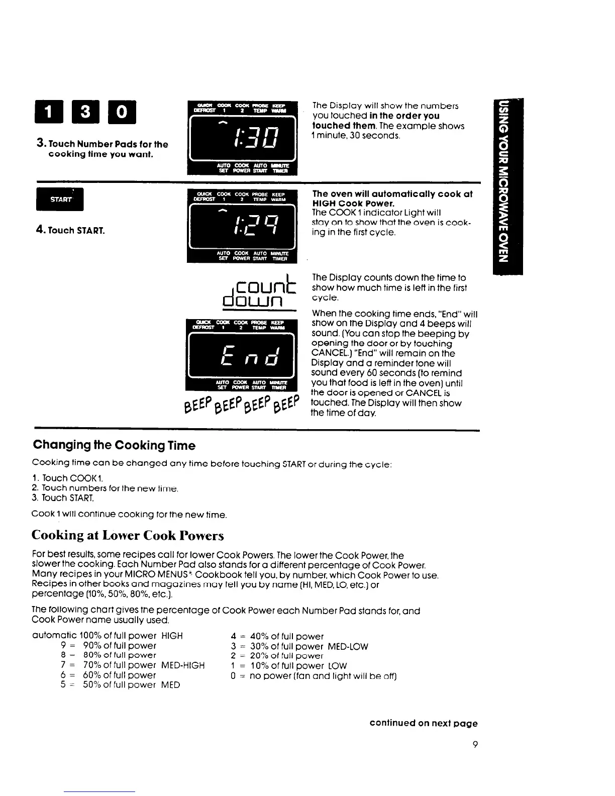 slower the cooking. Each Number Pad also stands for a different percentage of Cook Power.