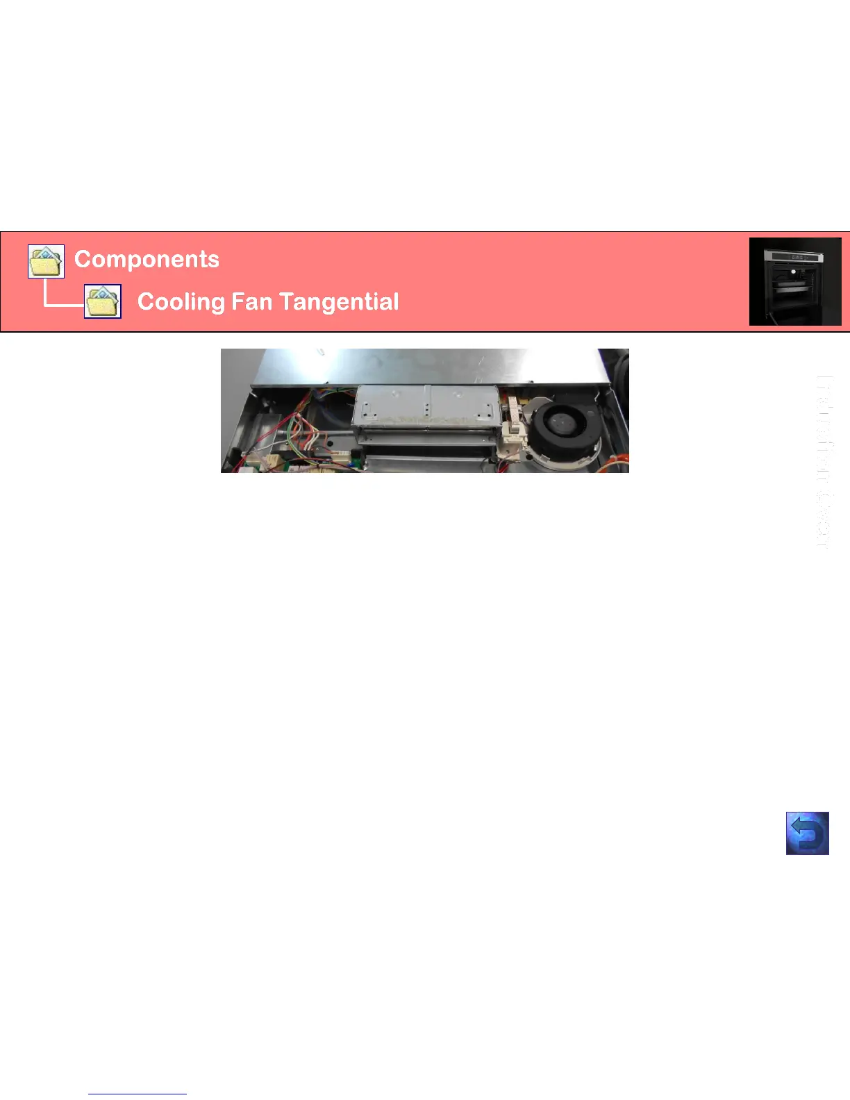 The tangential fan is cooling the oven itself, the door glass and the surrounding furniture.