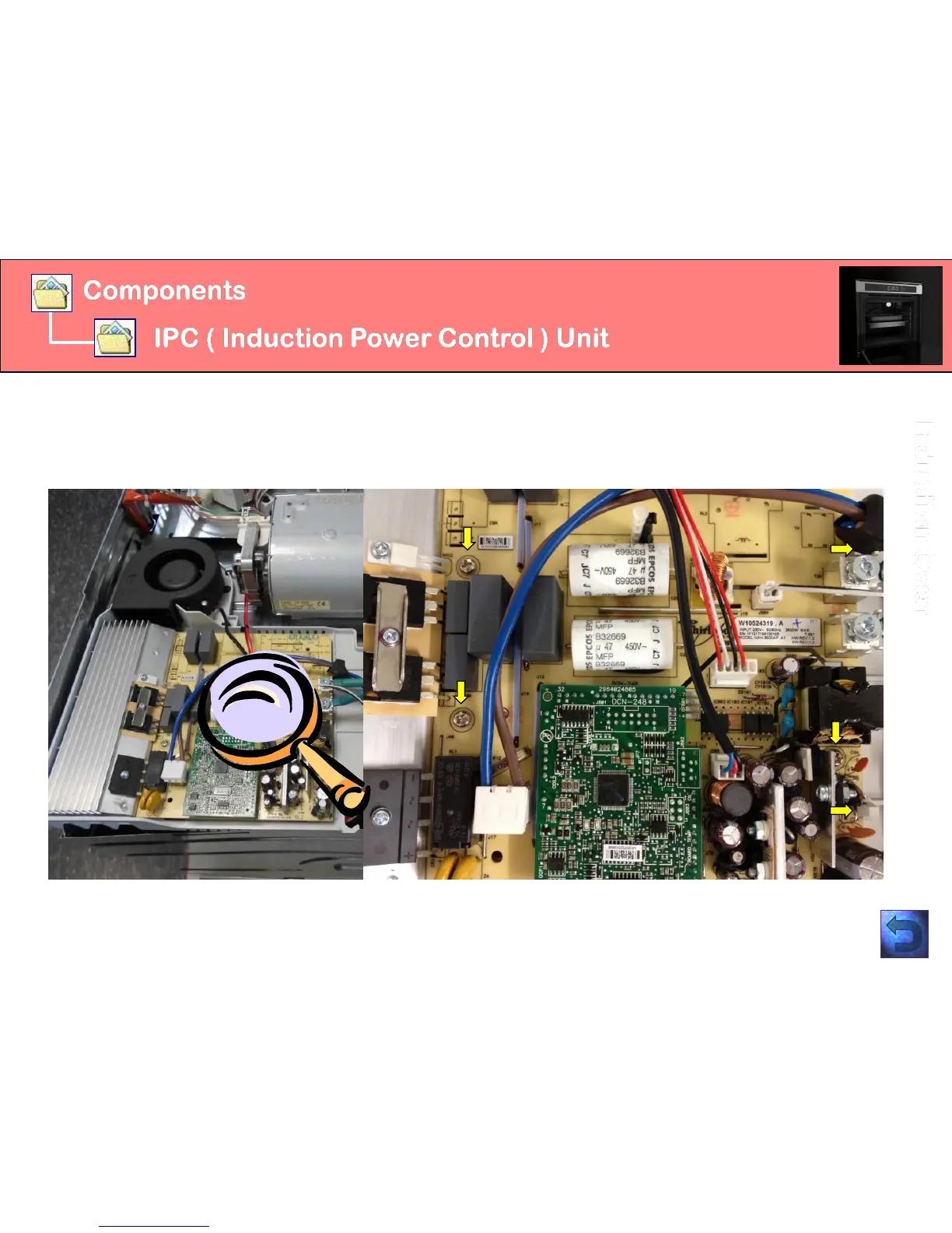 The Induction power board IPC is fixed with 3 self tapping Philips screws. When