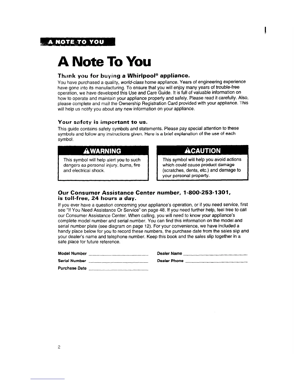 Thunk you for buying a Whirlpool@ appliance.