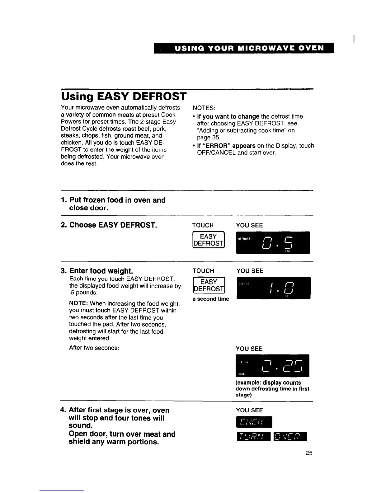 you must touch EASY DEFROST within