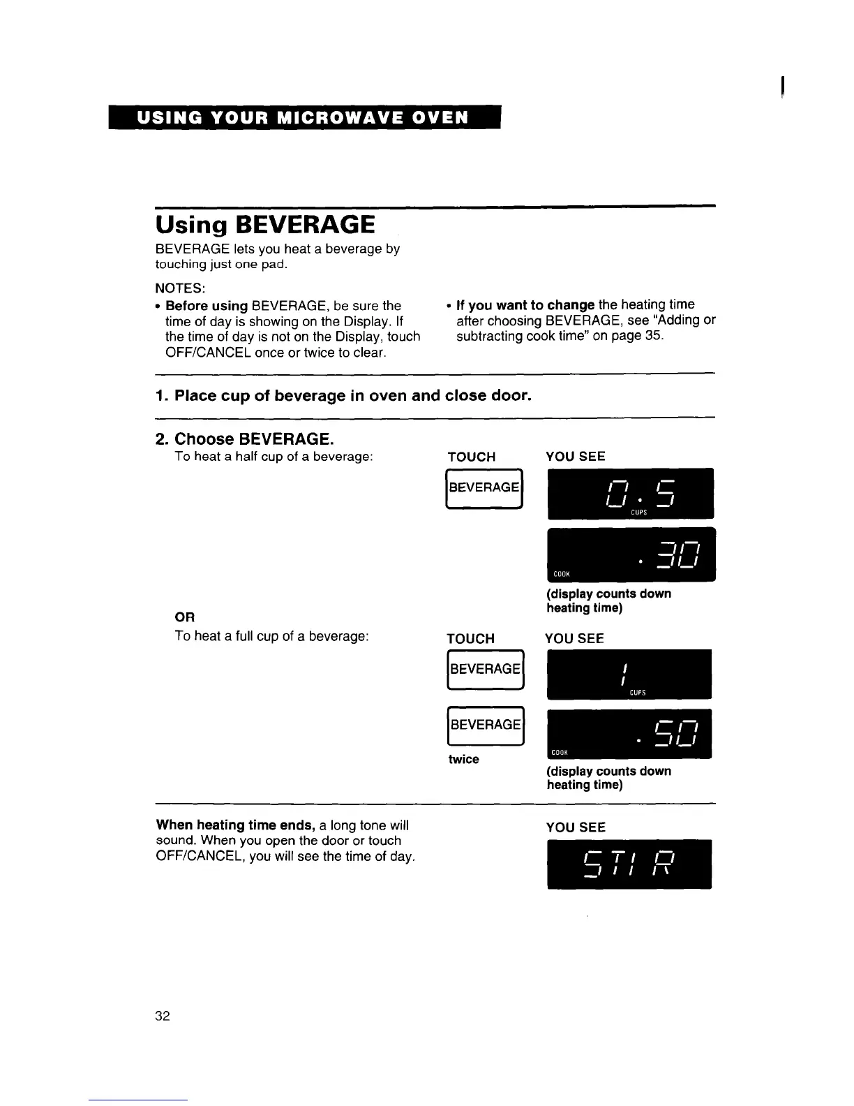 To heat a half cup of a beverage: