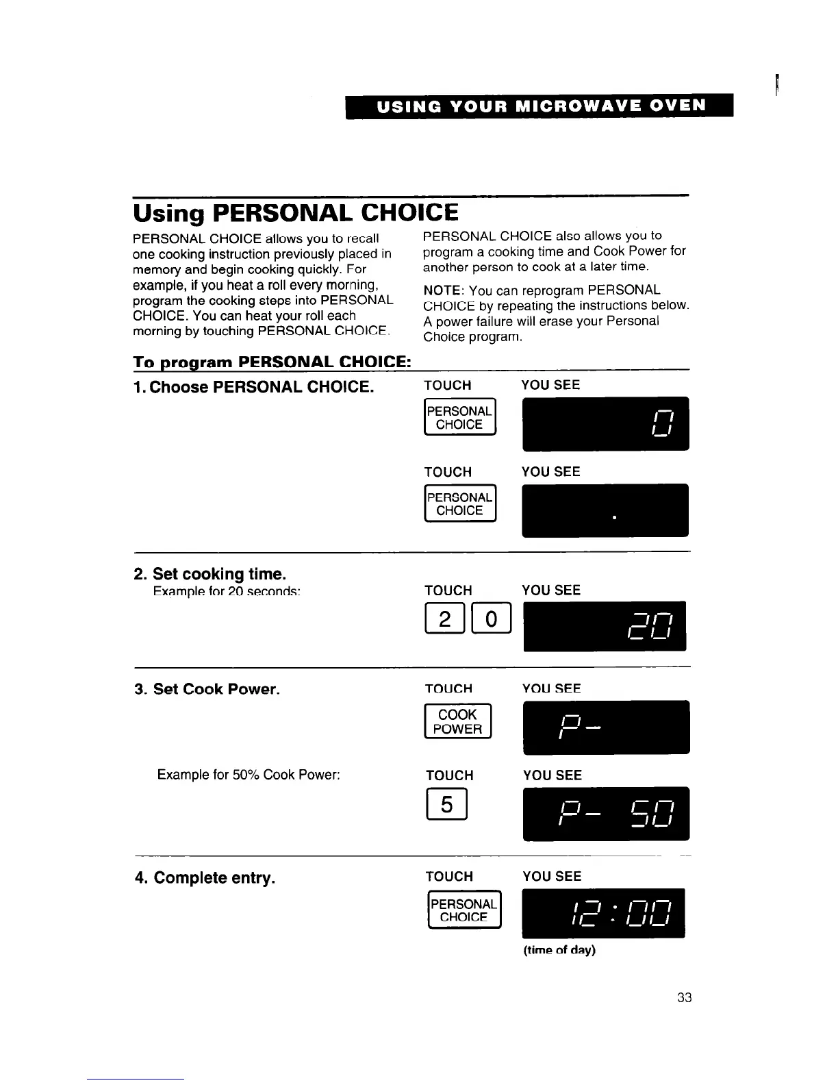 PERSONAL CHOICE allows you to recall