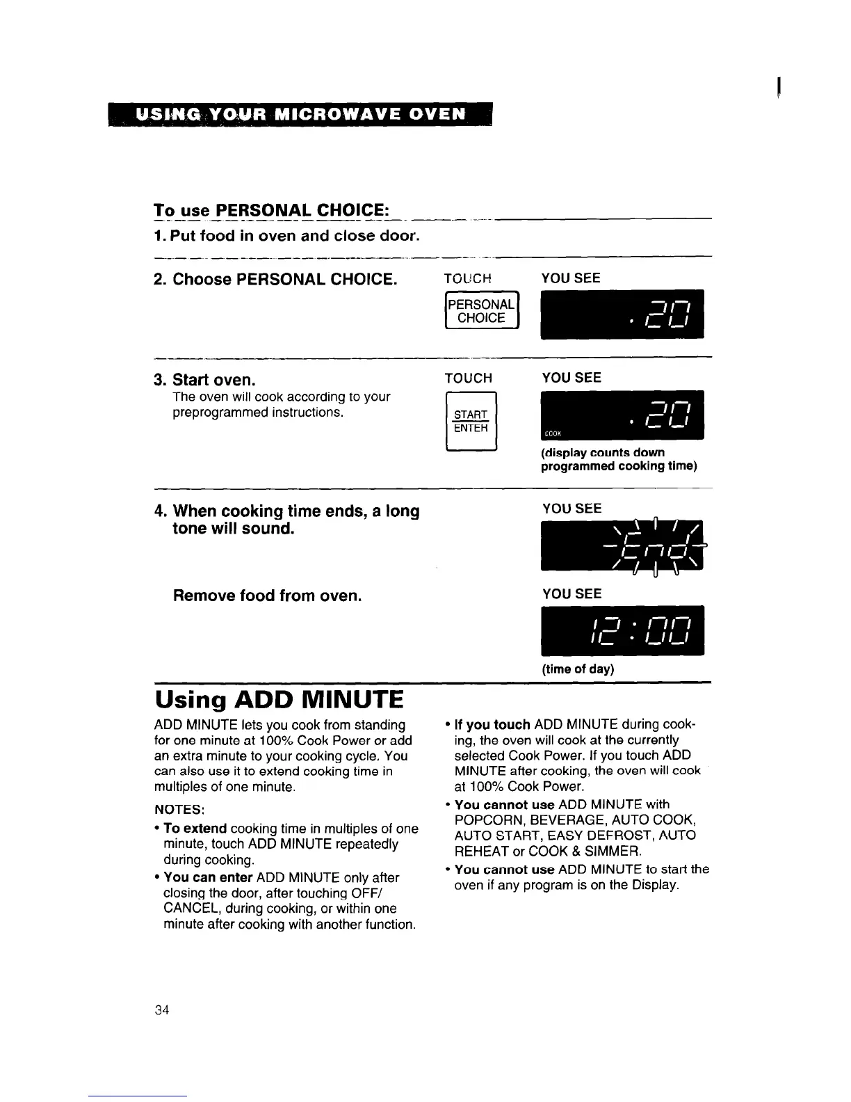 If you touch ADD MINUTE during cook-