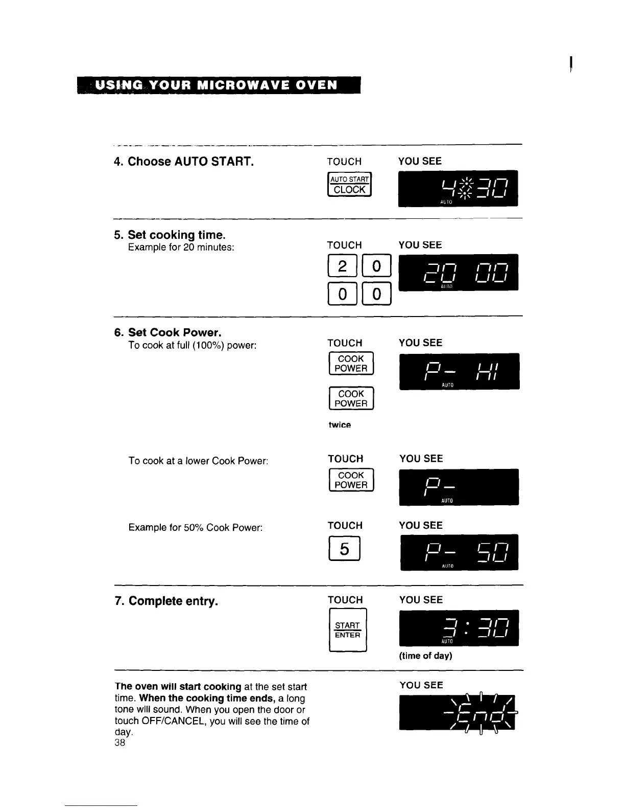 The oven will start cooking at the set start