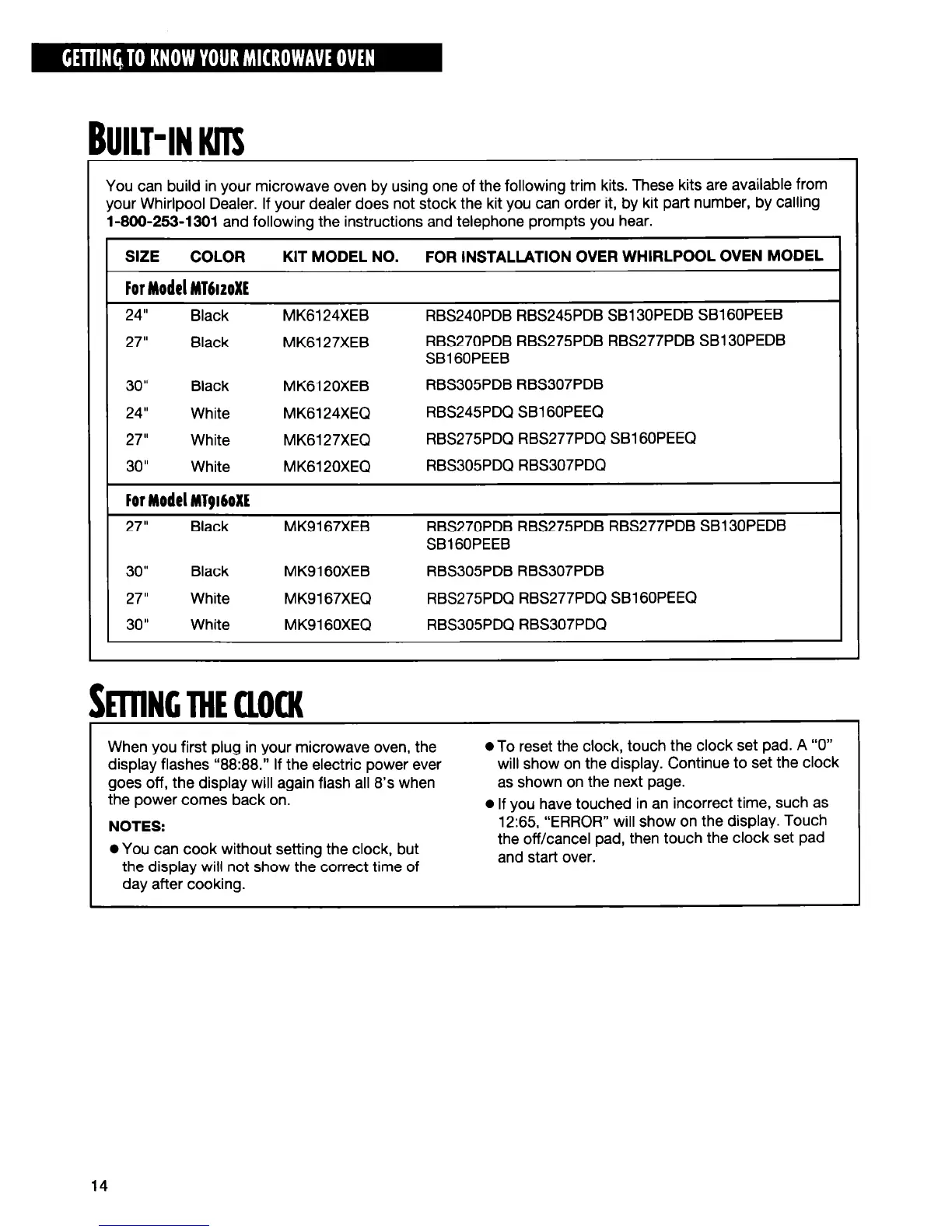 You can build in your microwave oven by using one of the following trim kits. These kits are available from