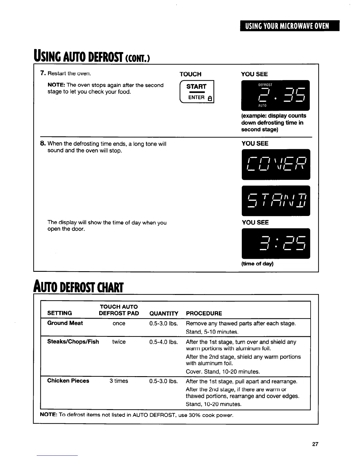 NOTE: To defrost items not listed in AUTO DEFROST, use 30% cook power.