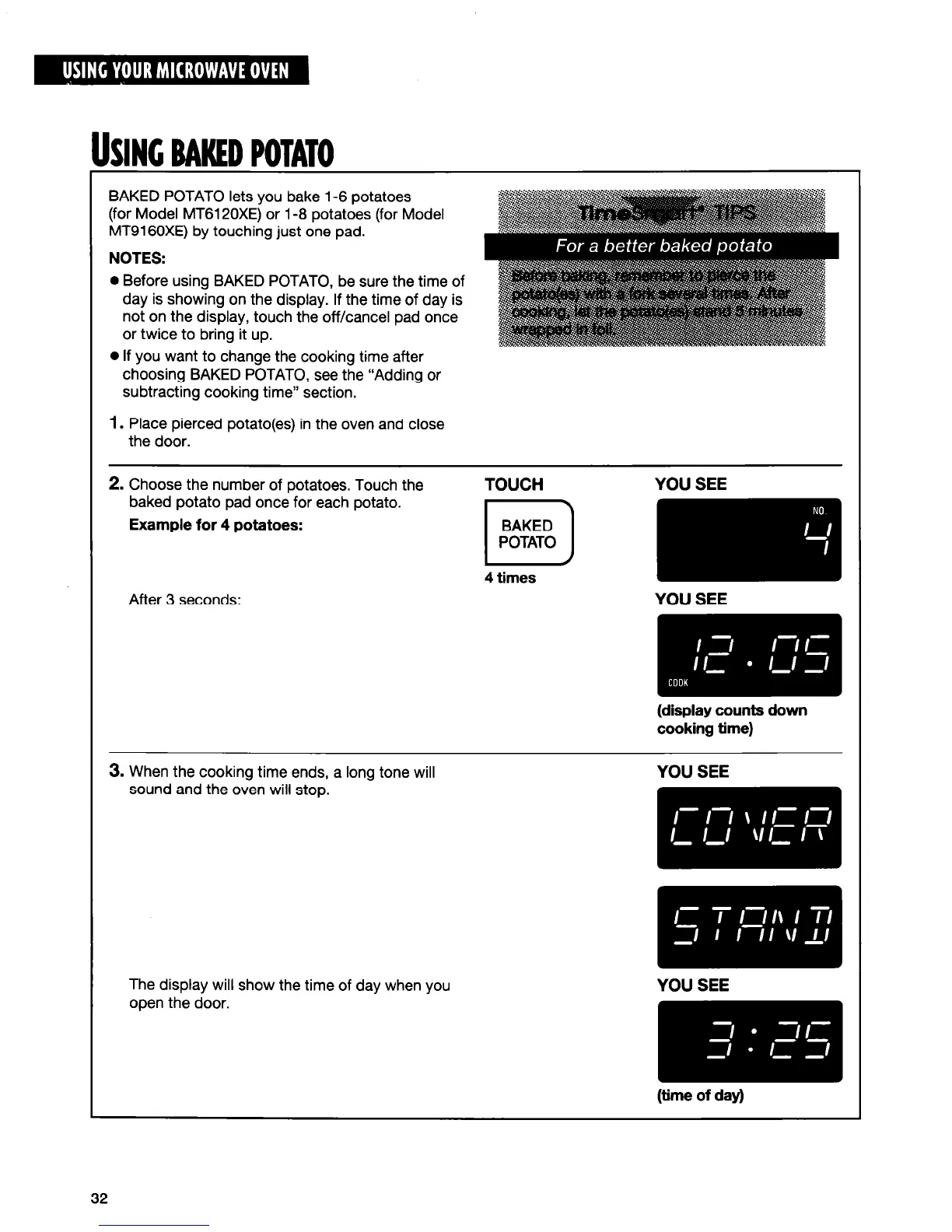 0 Before using BAKED POTATO, be sure the time of