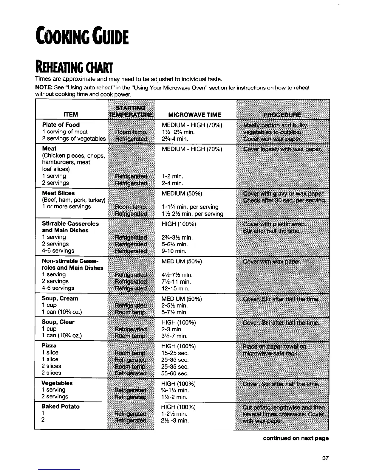 NOTE: See “Using auto reheat” in the “Using Your Microwave Oven” section for instructions on how to reheat