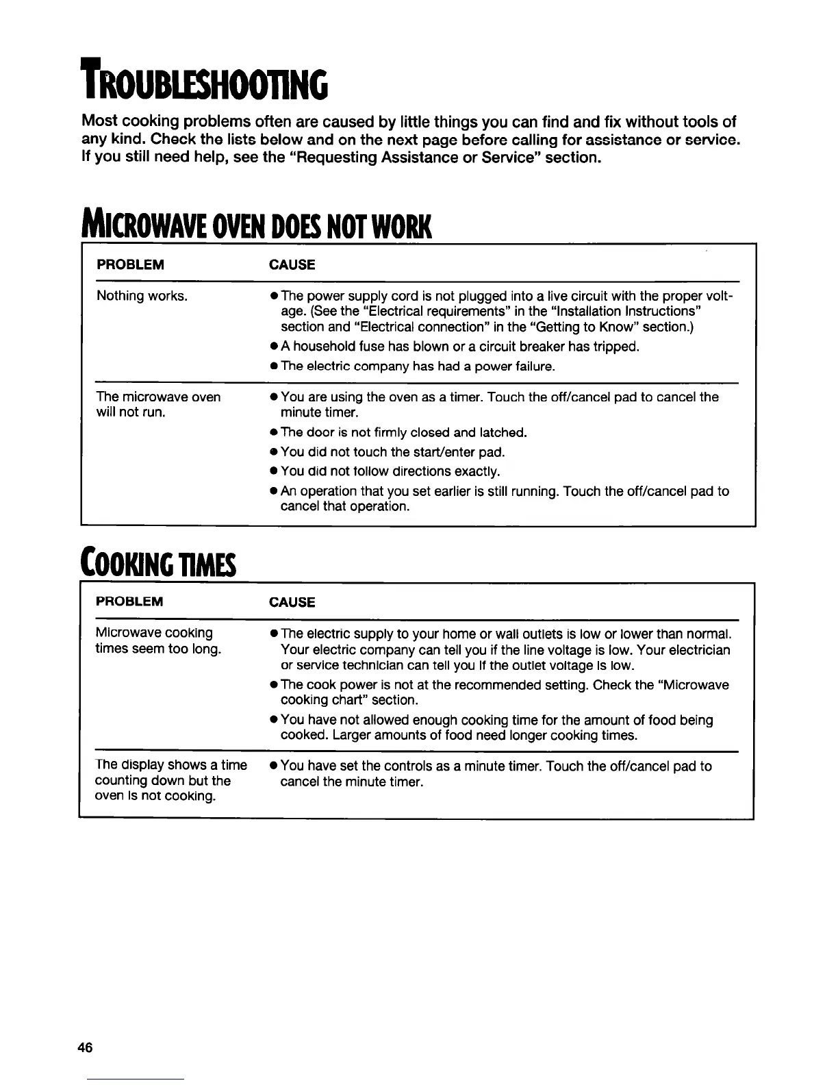 any kind. Check the lists below and on the next page before calling for assistance or service.