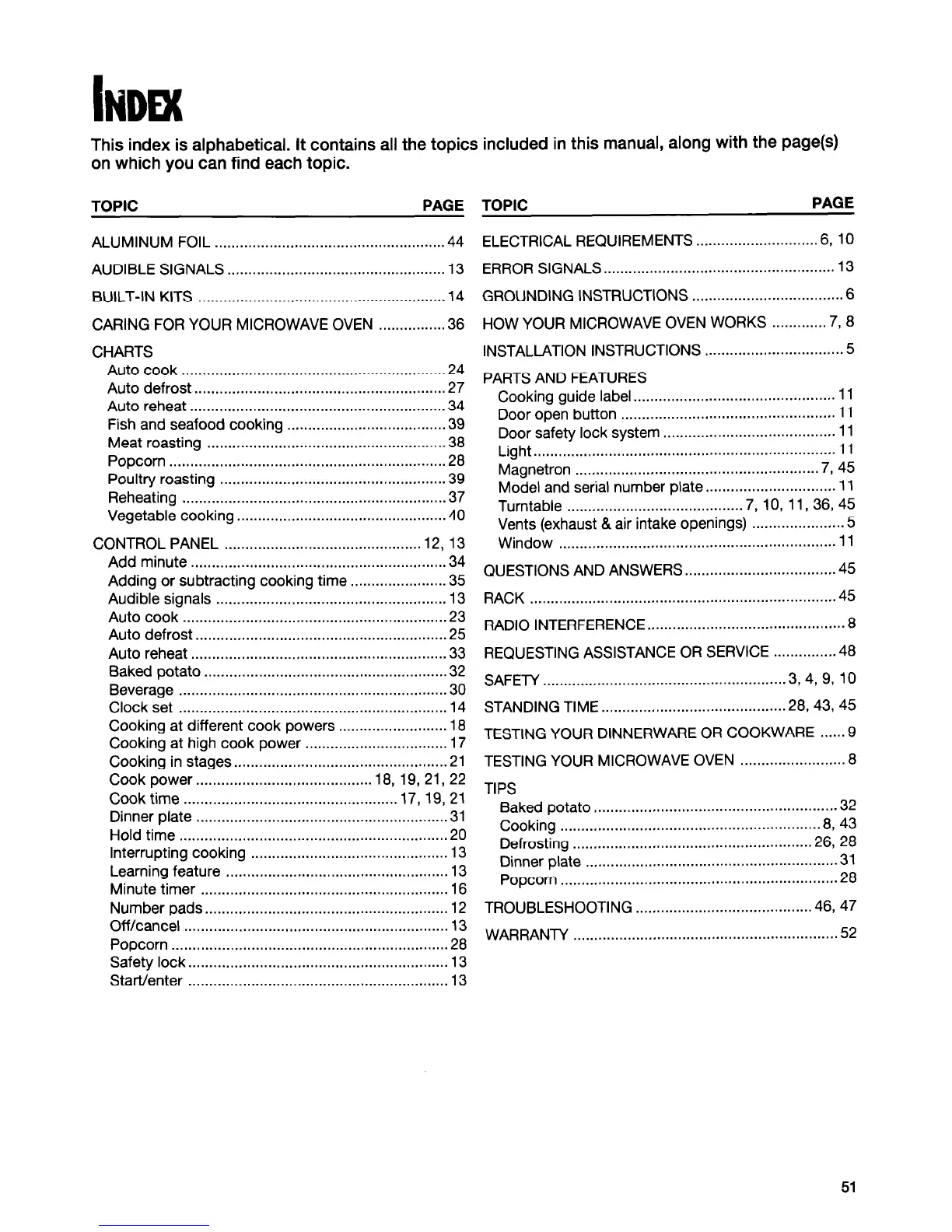 This index is alphabetical. It contains all the topics included in this manual, along with the page(s)
