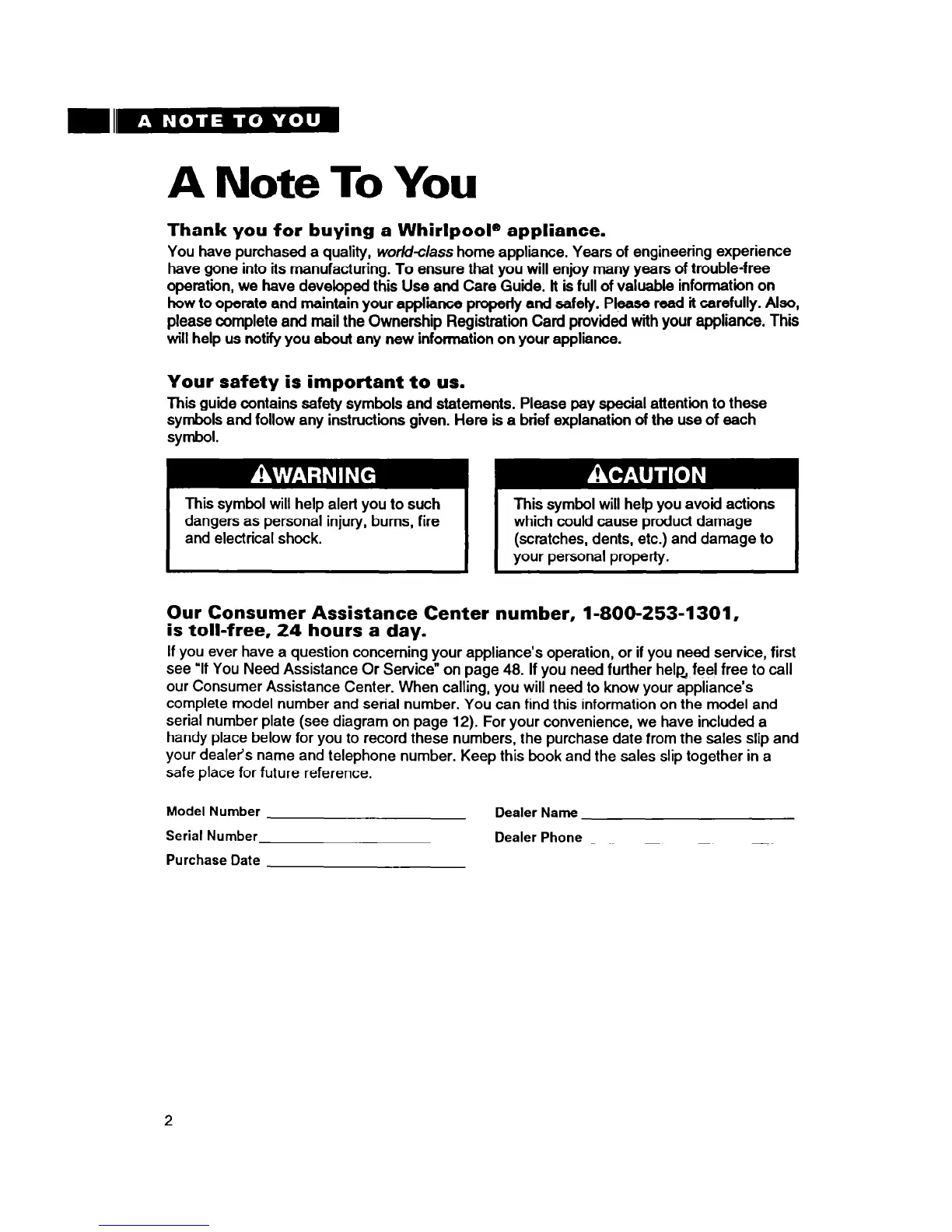 You have purchased a quality, worMclass home appliance. Years of engineering experience
