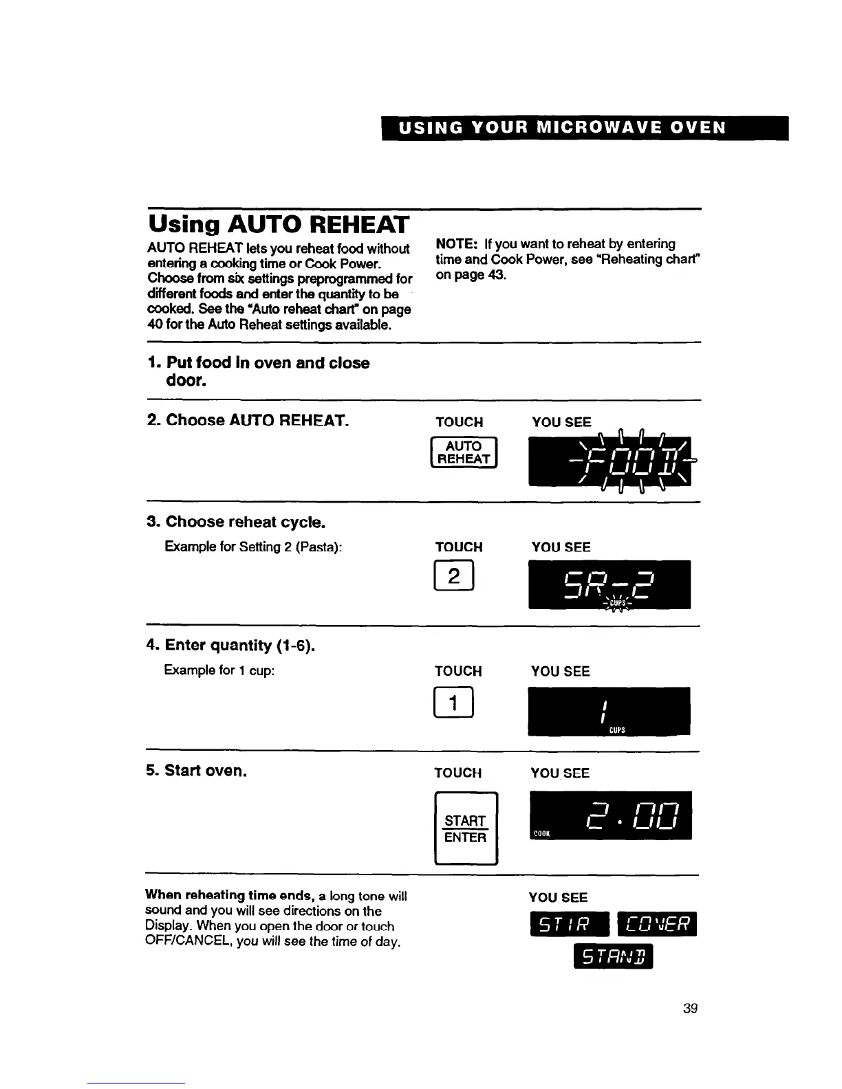 cooked. See the uAuto reheat chart” on page