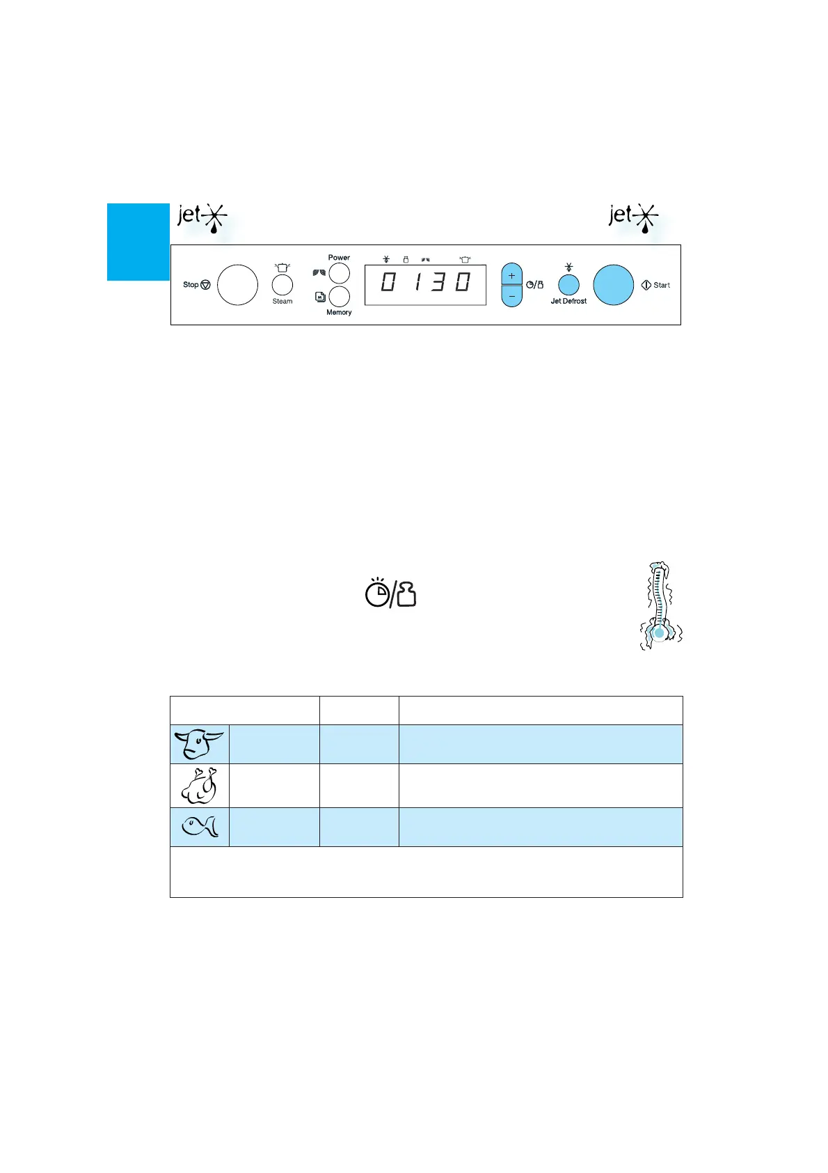 JET DEFROST SHOULD ONLY BE USED if the net weight is between 100 - 2Kg.