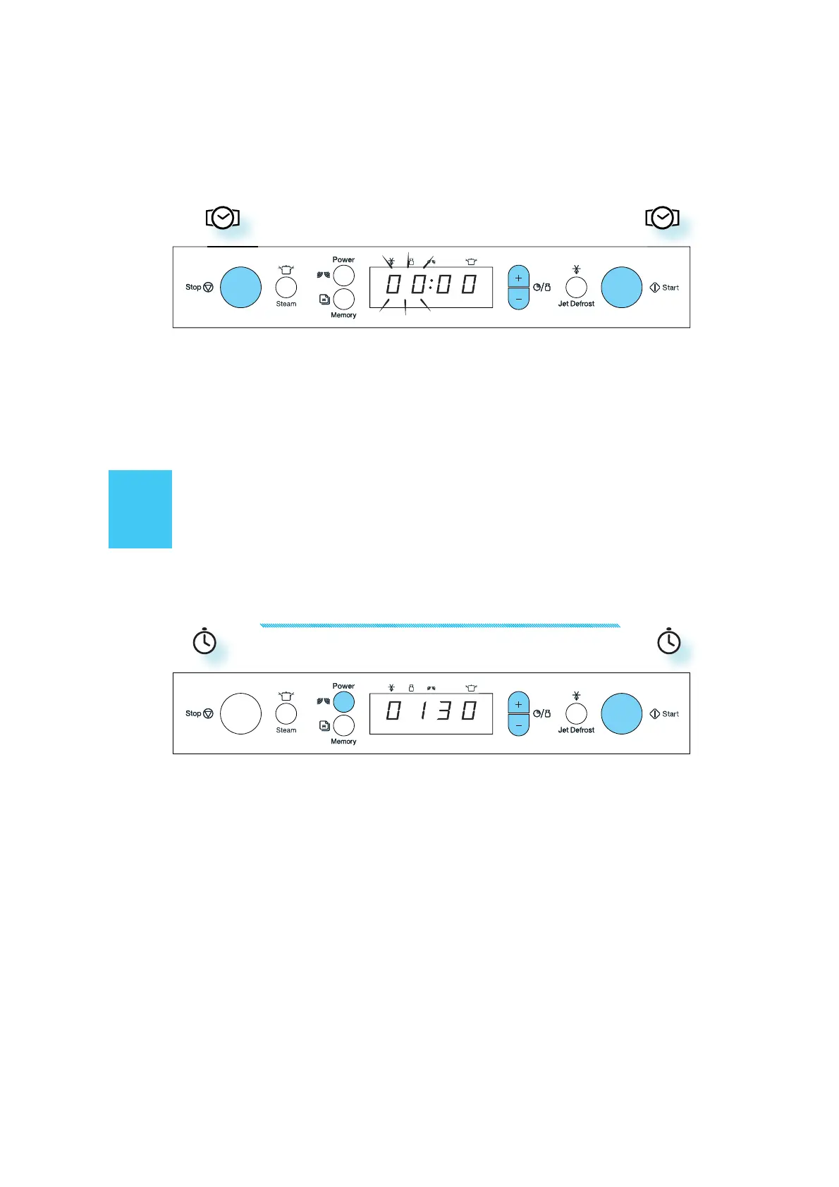 TENERE LA PORTA DEL FORNO APERTA QUANDO SI IMPOSTA L’OROLOGIO. Si hanno 5 minuti di tempo per com-