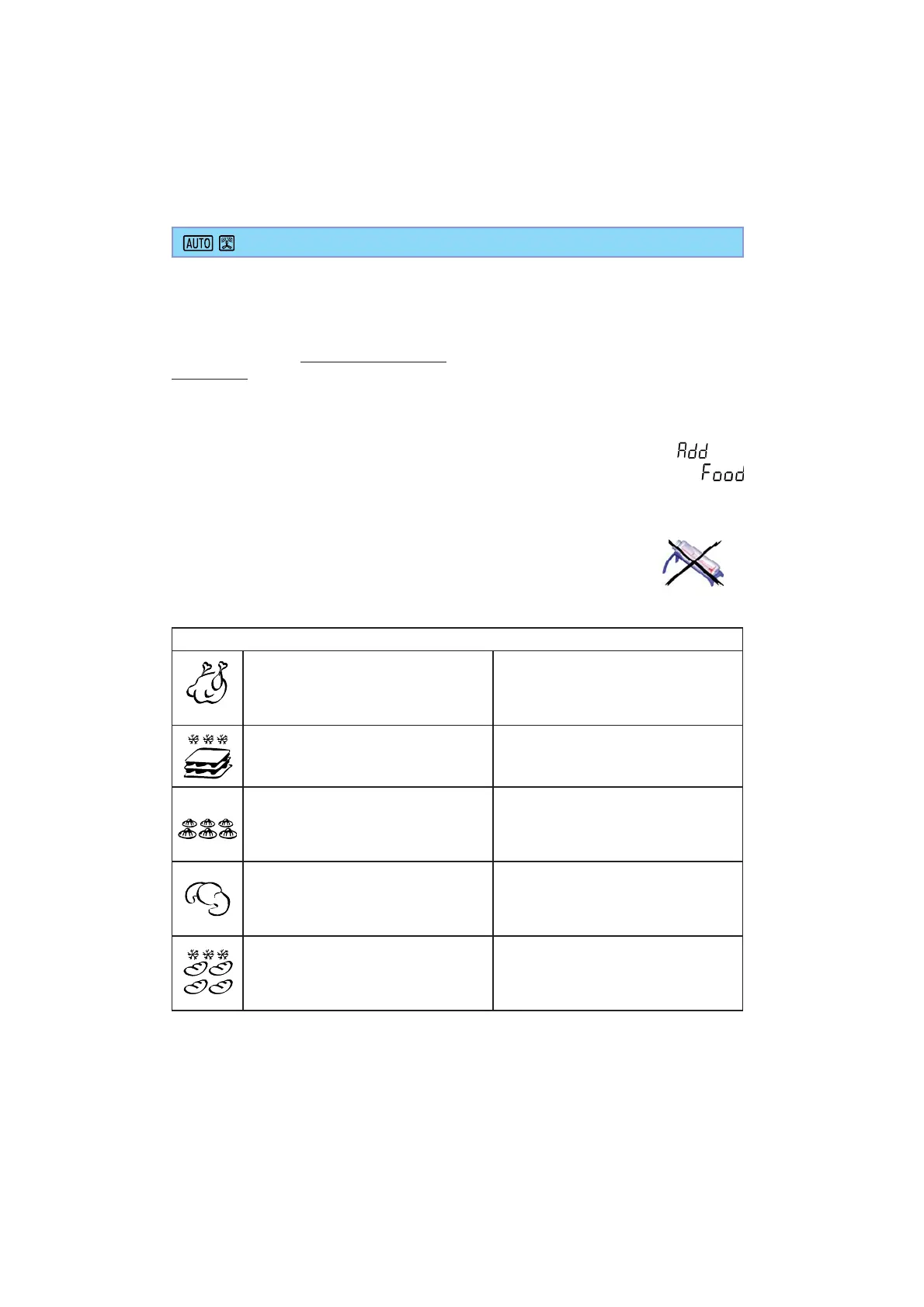 oven when it promts you to “Add food”.