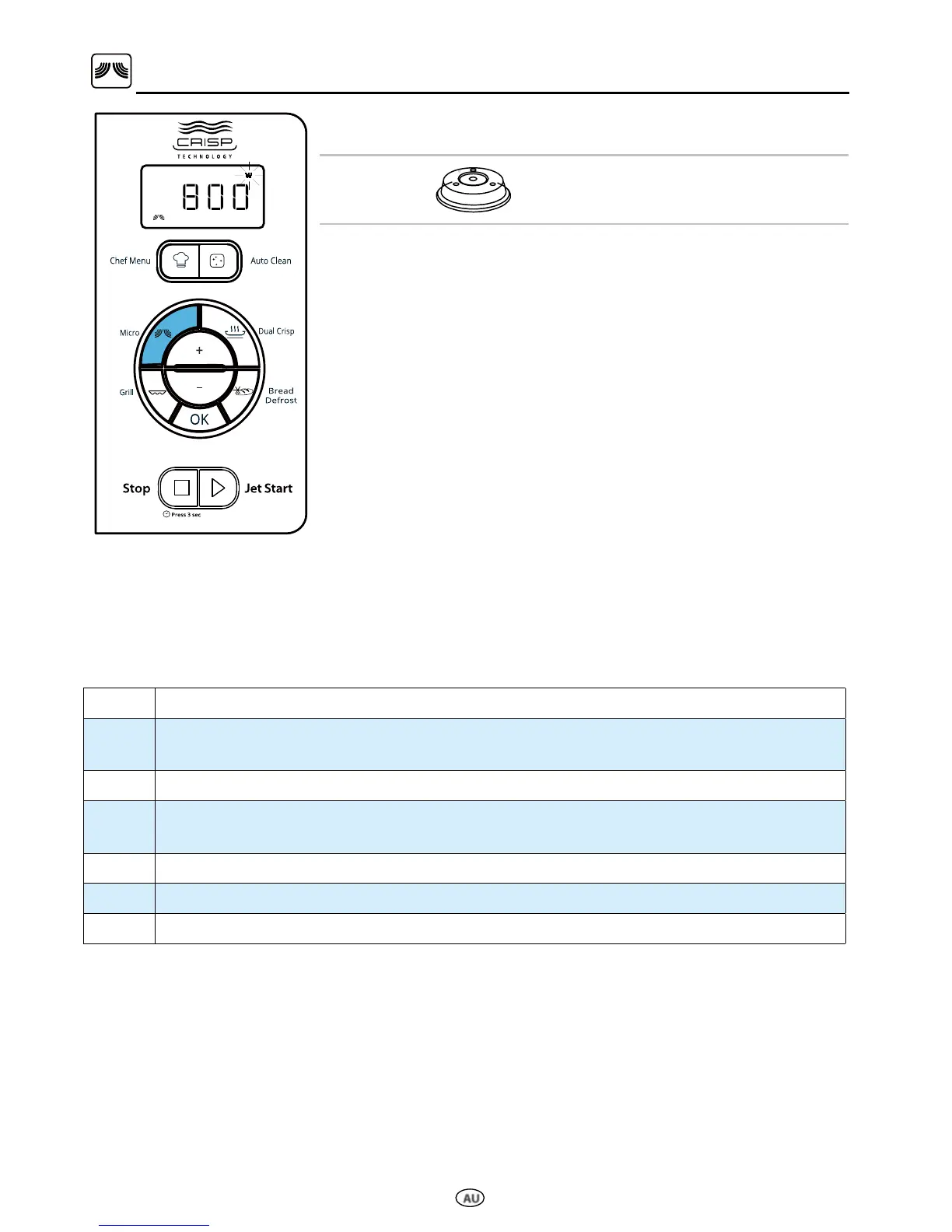 - To adjust the power: first press the Microwave button then press the Plus/
