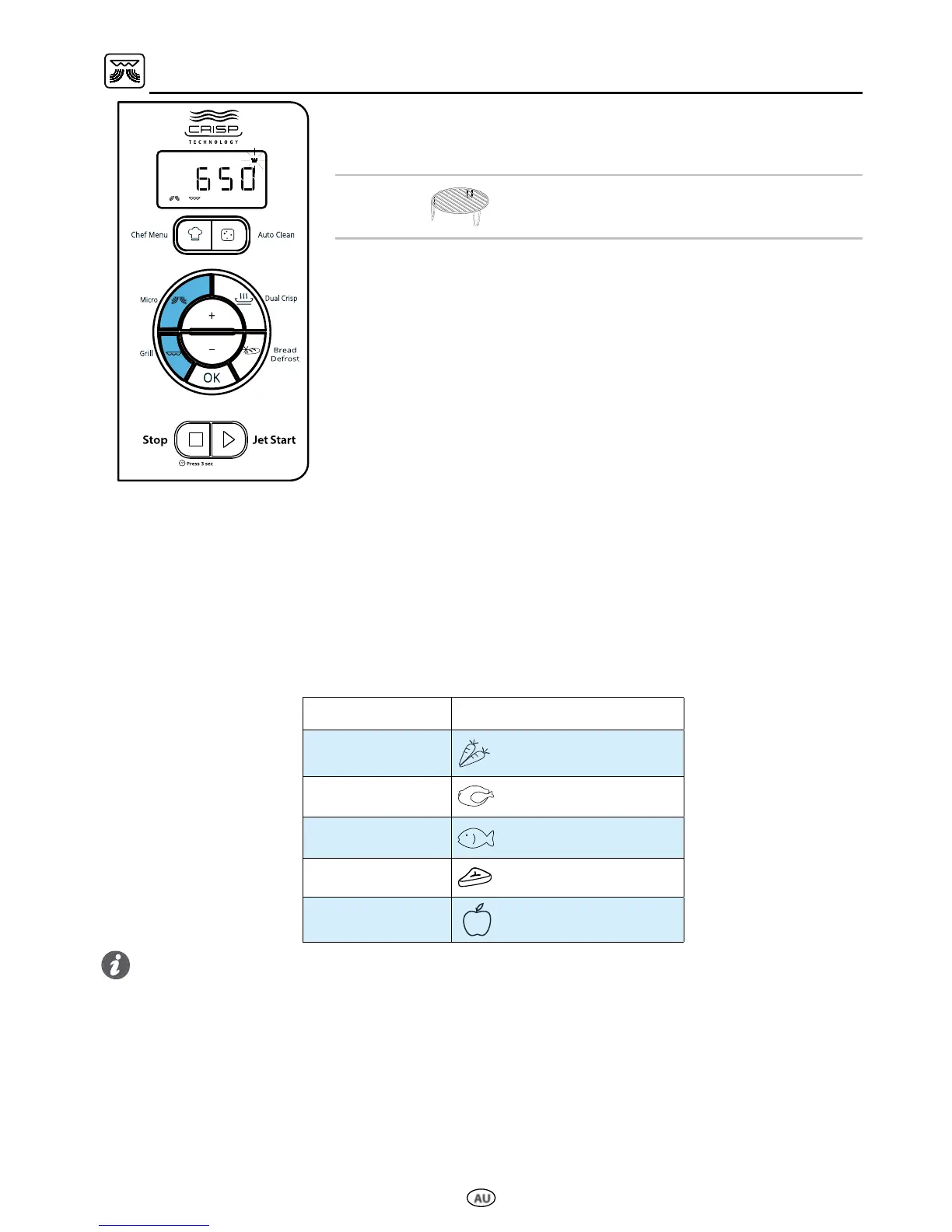 • If you cook large food such as poultry, put food on microwave and oven safe dish, directly put on the turntable.