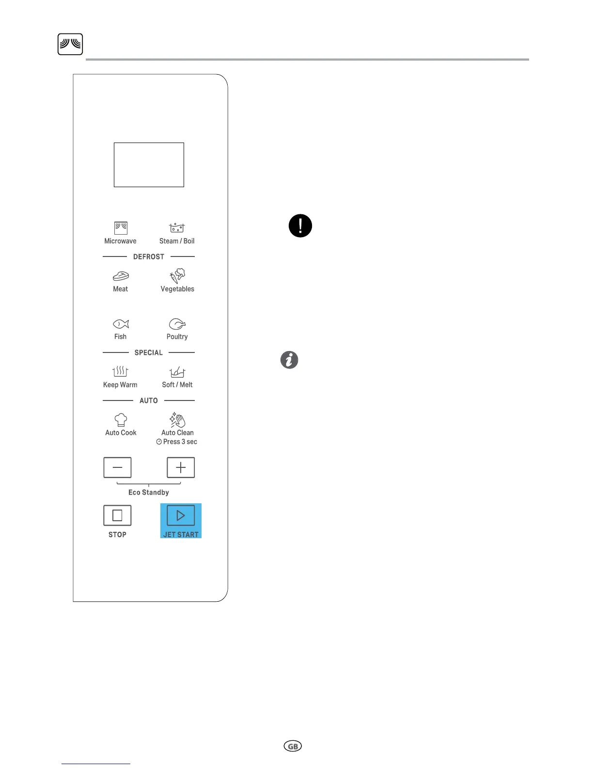 Pressing the JET START button, the Microwa-