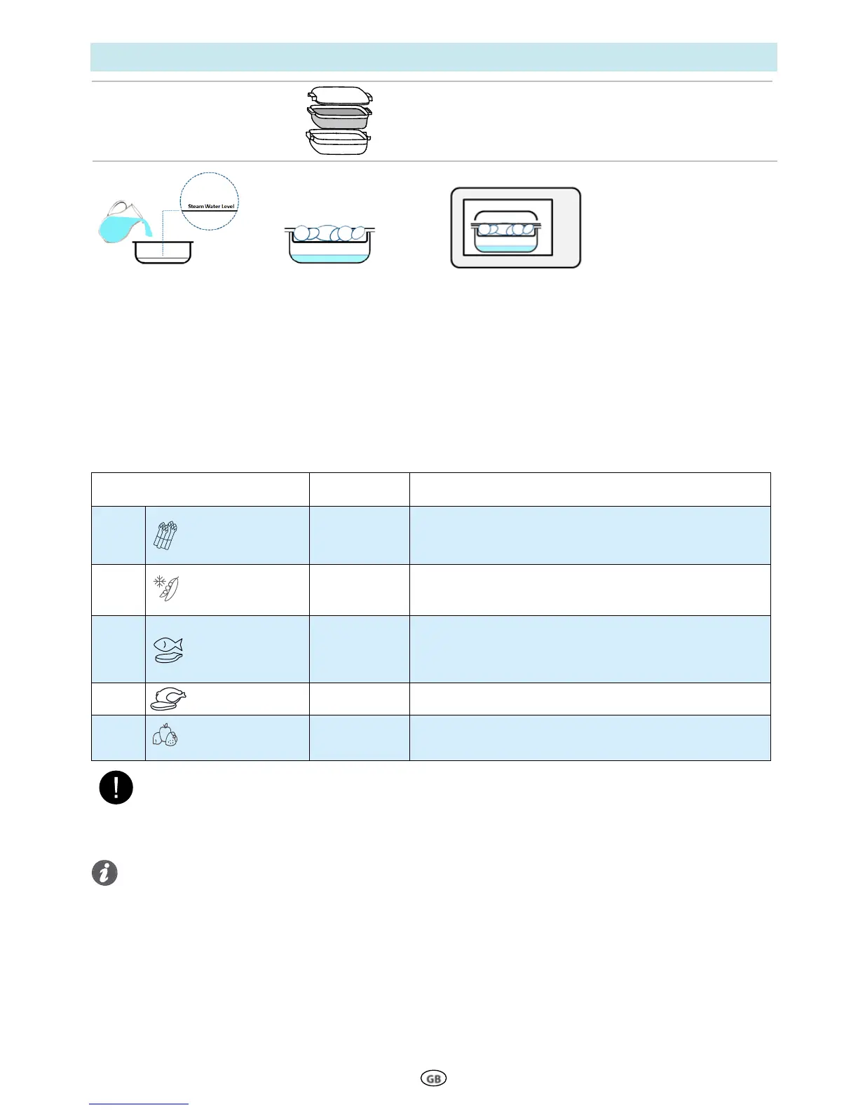 Fruit 150g - 500g Add 100ml water into the steamer bottom.